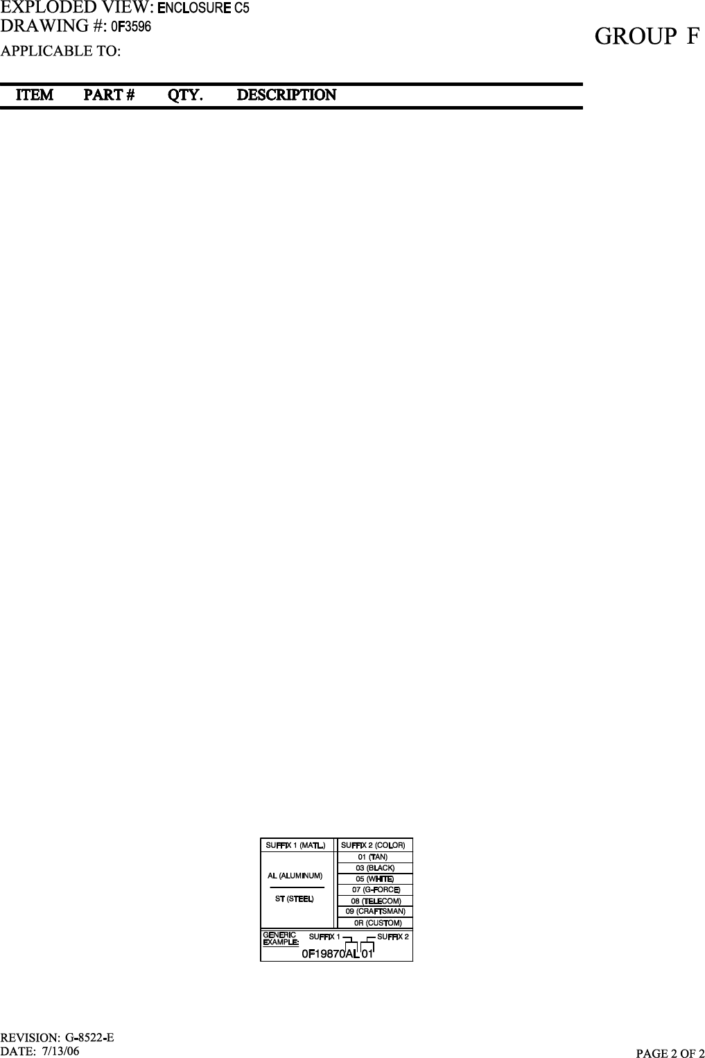 (2) I/N’S 1 THRU 7, REFER TO CHART BELOW FOR ENCLOSURE COLOR & MATERIAL TYPE.