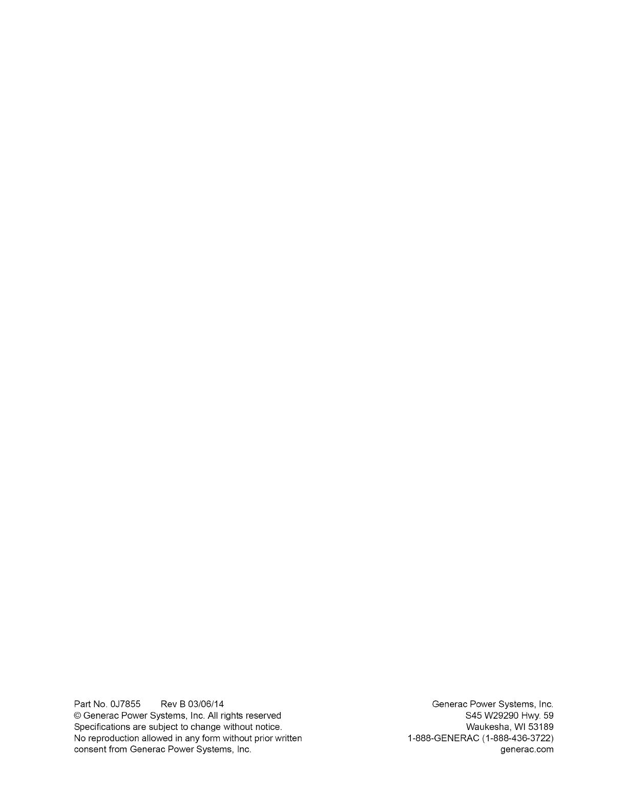 Thank you for purchasing this model by Generac Power Systems, Inc.