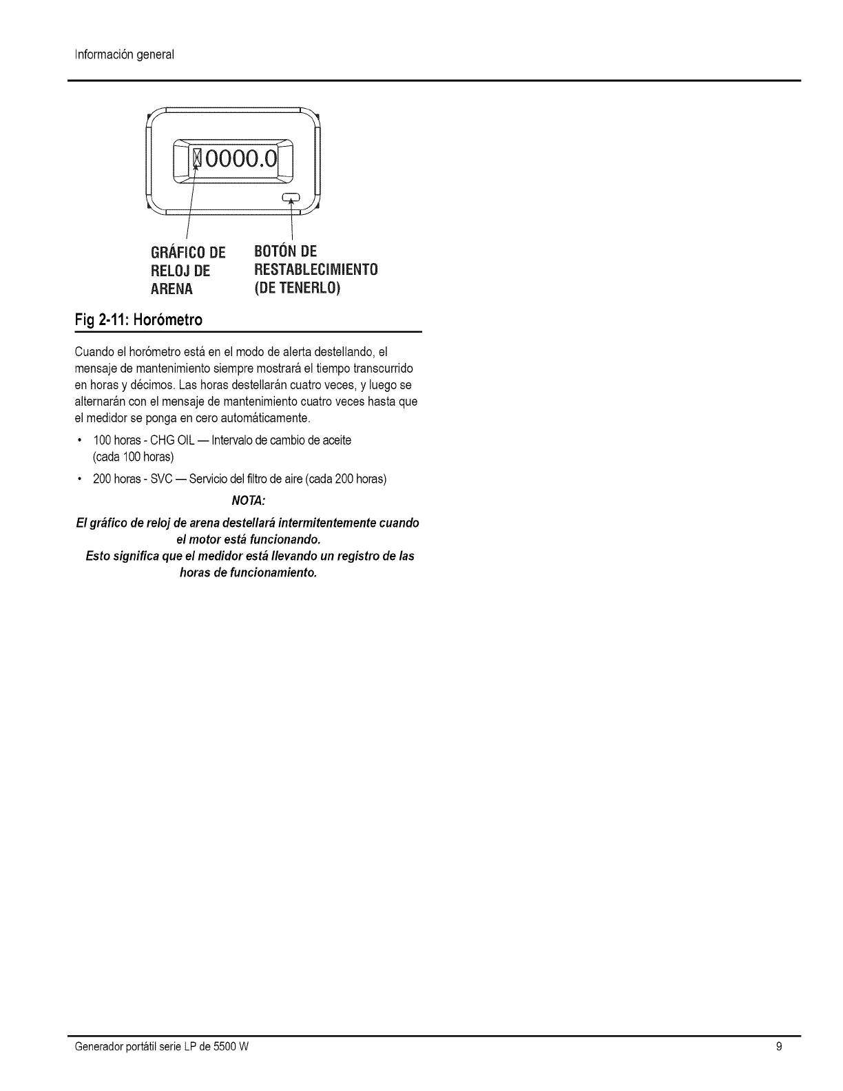 Falta potencia del motor. 1. La carga es muy alta. 1. Reduzca la carga (yea "No sobrecargue el generador").