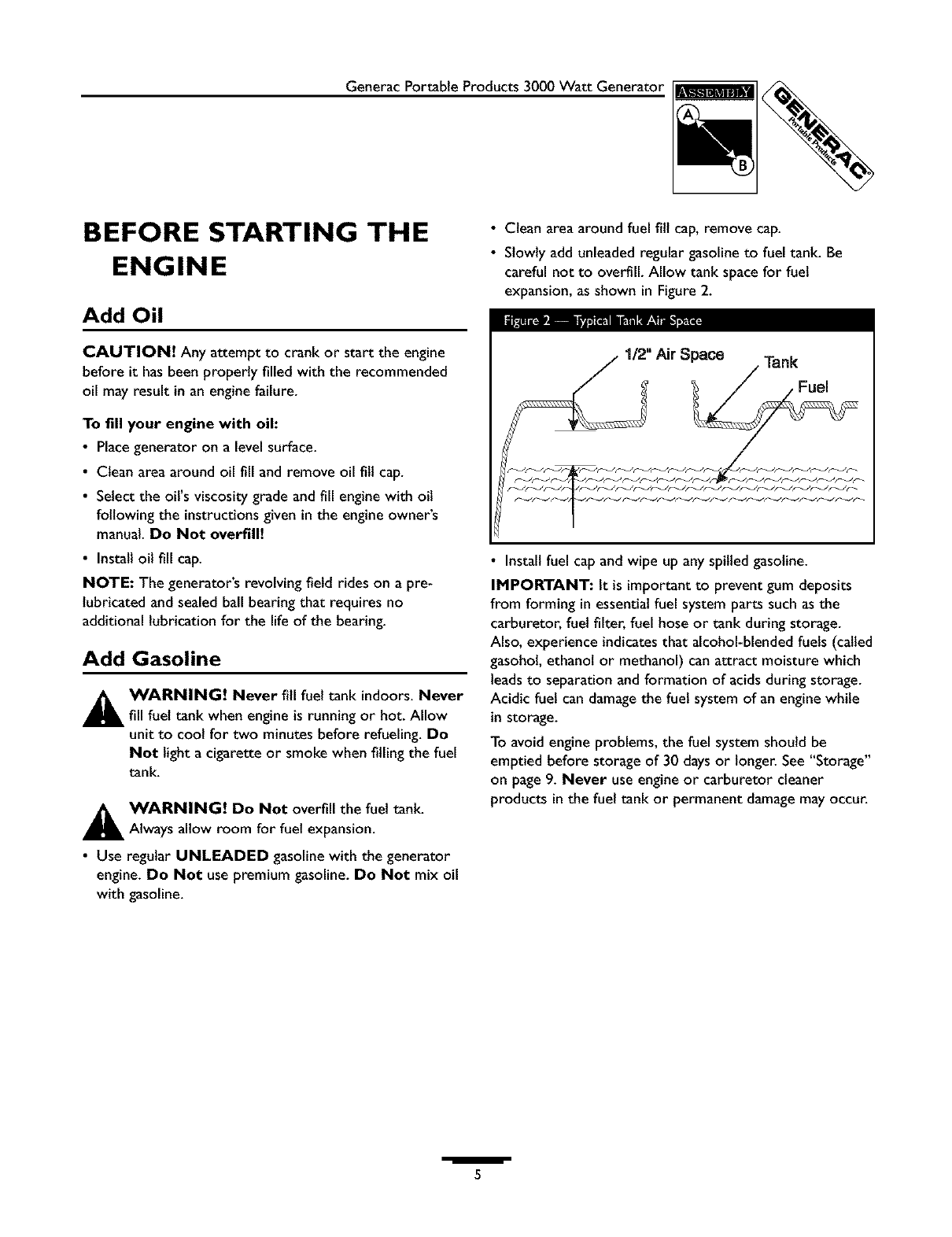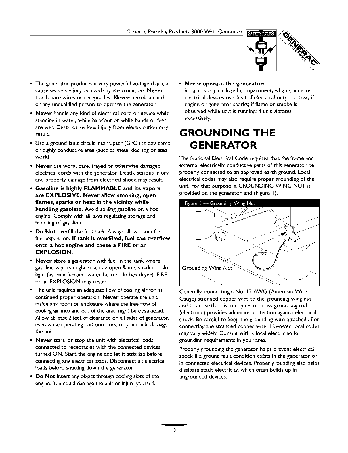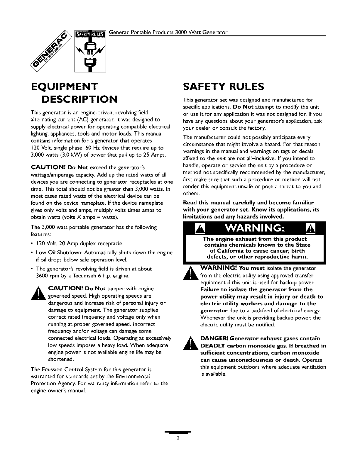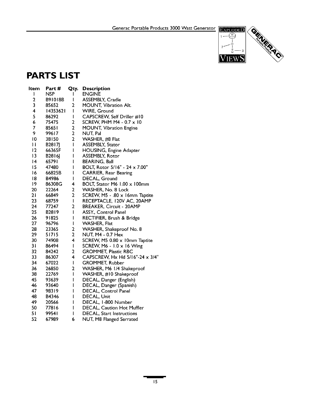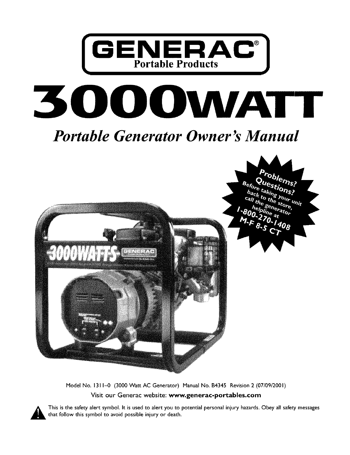 Model No. 1311_0 (3000 Watt AC Generator) Manual No. B4345 Revision 2 (07/09/2001)