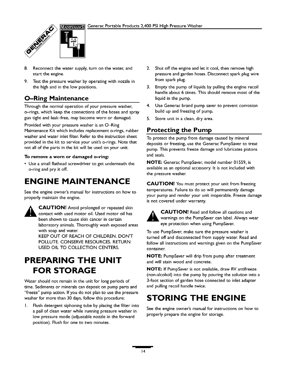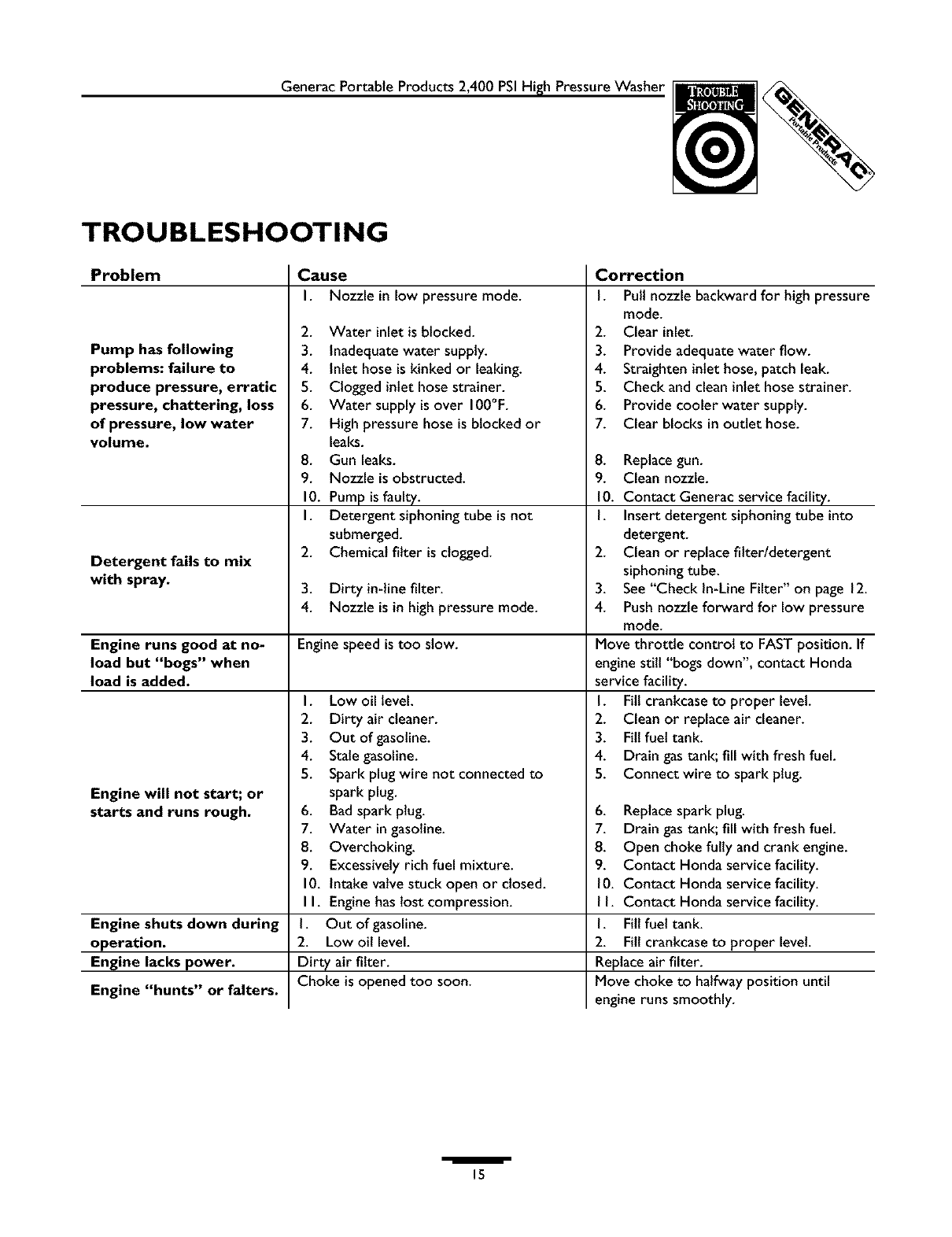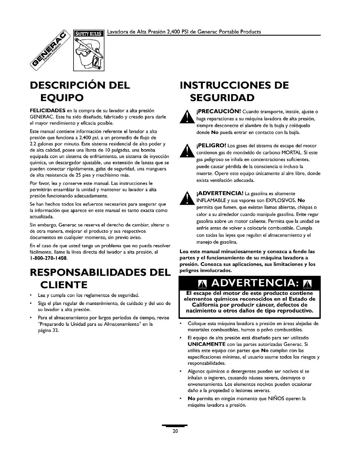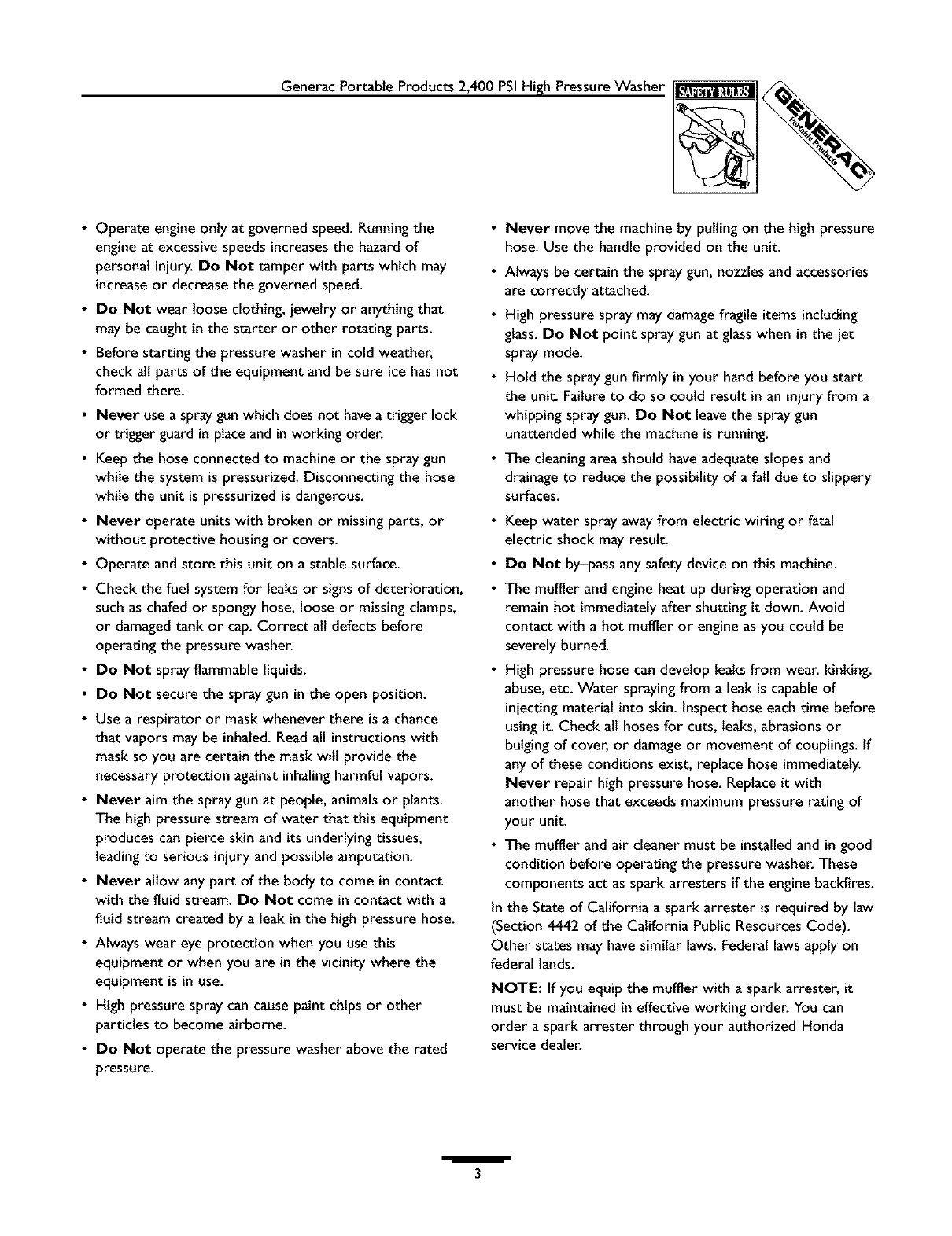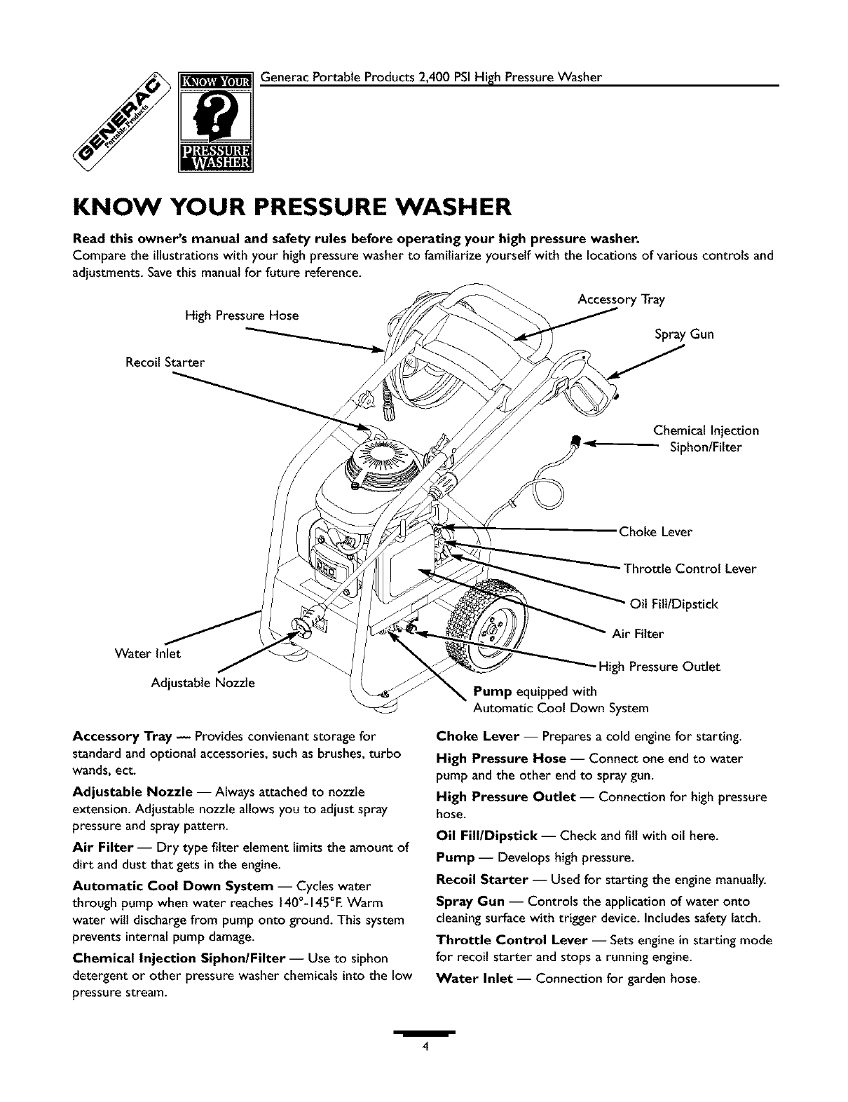 Generac 1537 1 User Manual PRESSURE WASHER Manuals And Guides L0403238