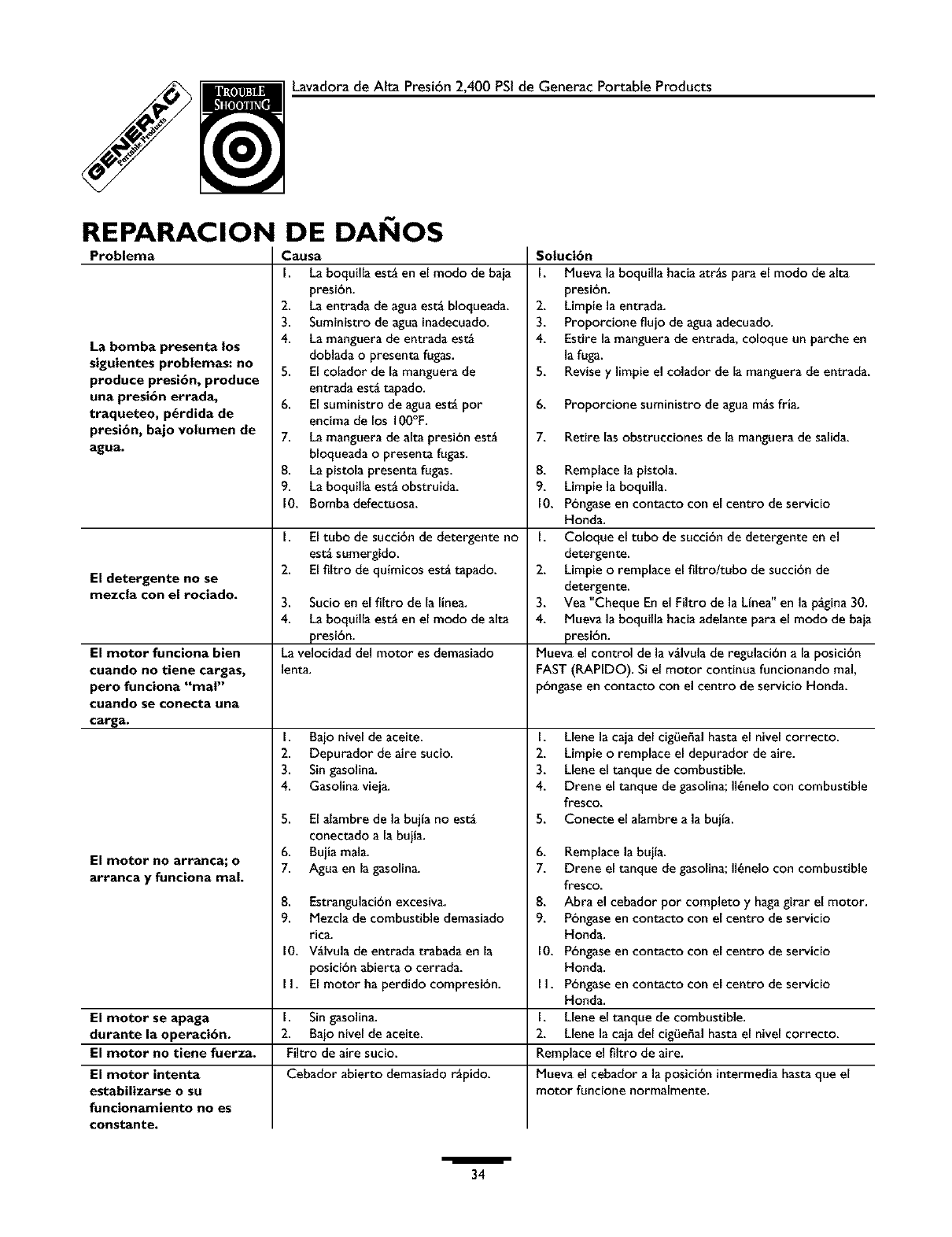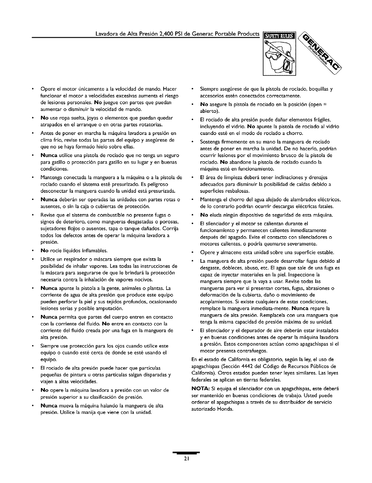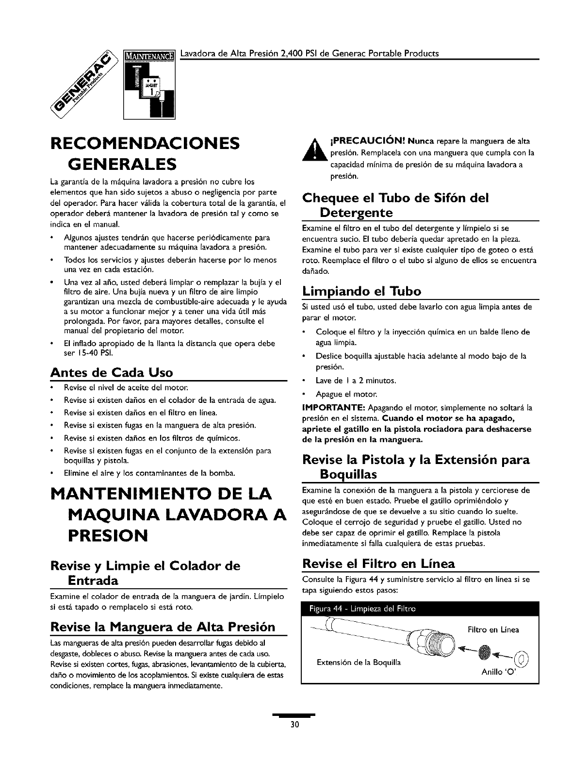 ** DESGASTE NORMAL: Como sucede con todos los aparatos mecgnicos, las lavadoras a presi6n