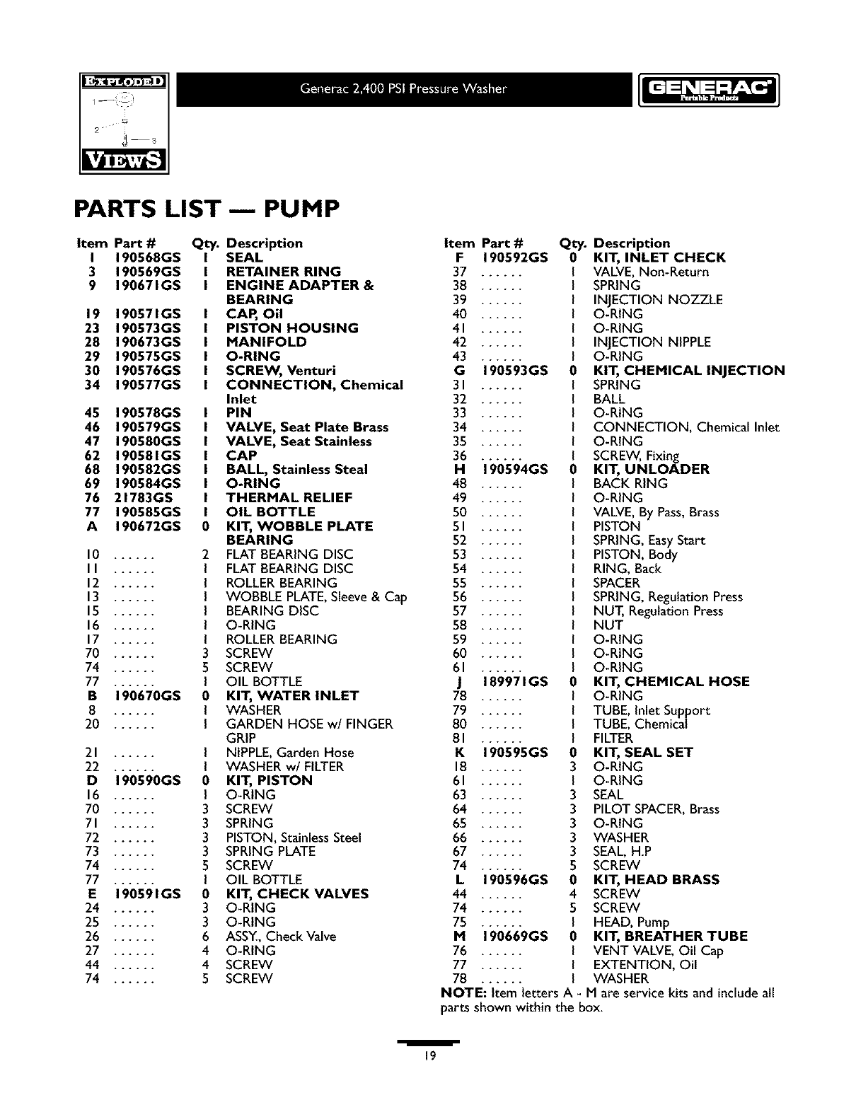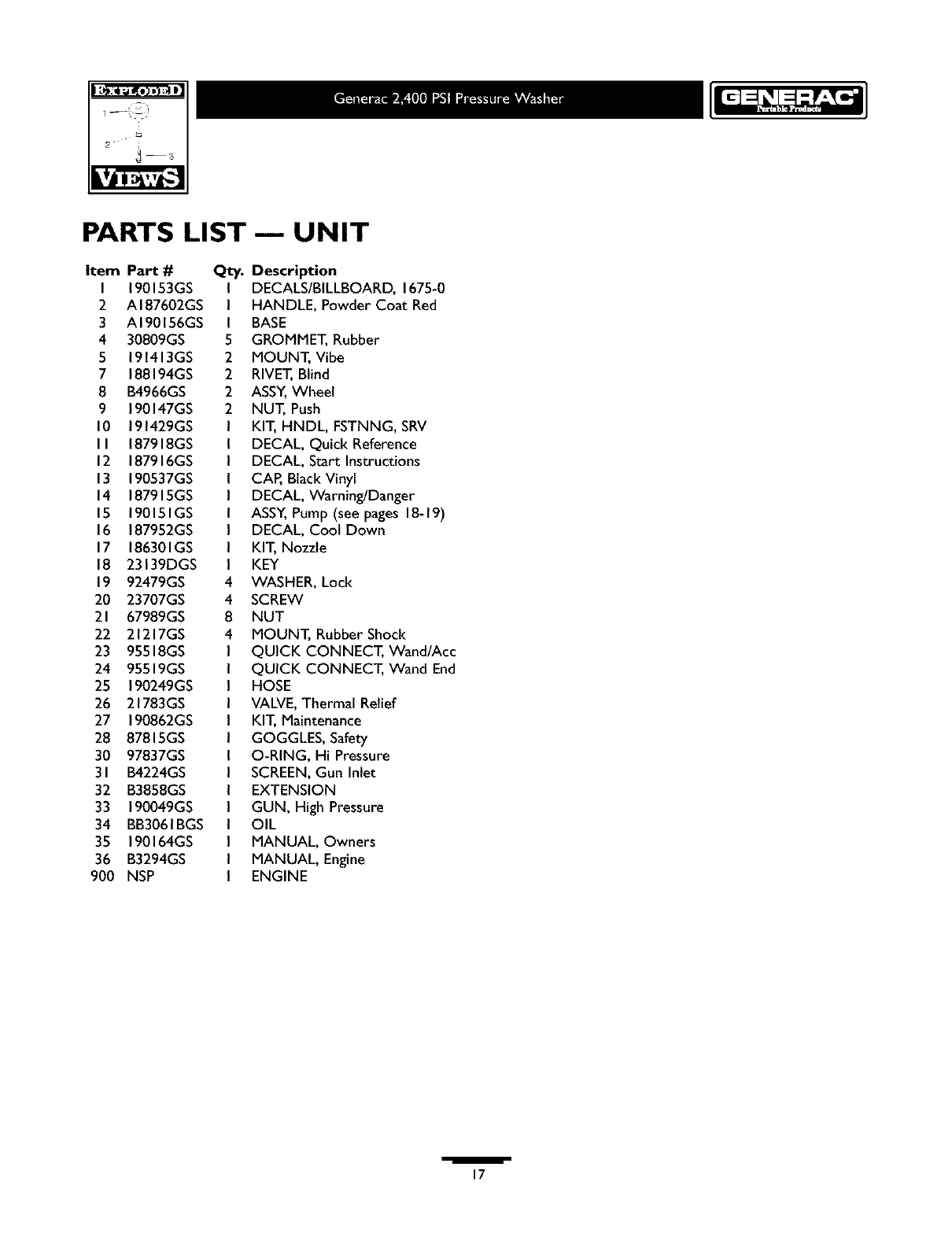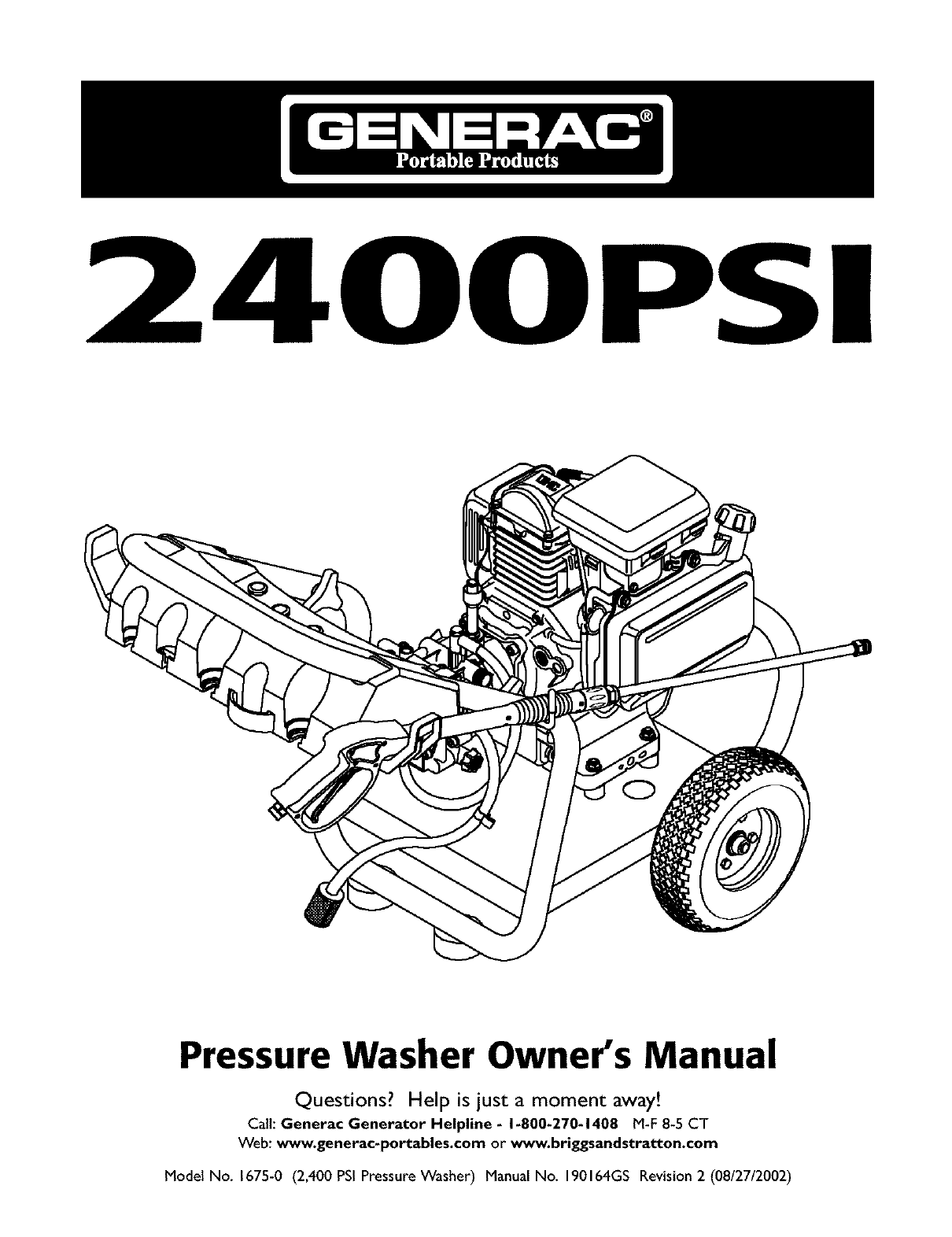 Model No. 1675-0 (2,400 PSiPressure Washer) Manual No. 190164GS Revision 2 (08/27/2002)
