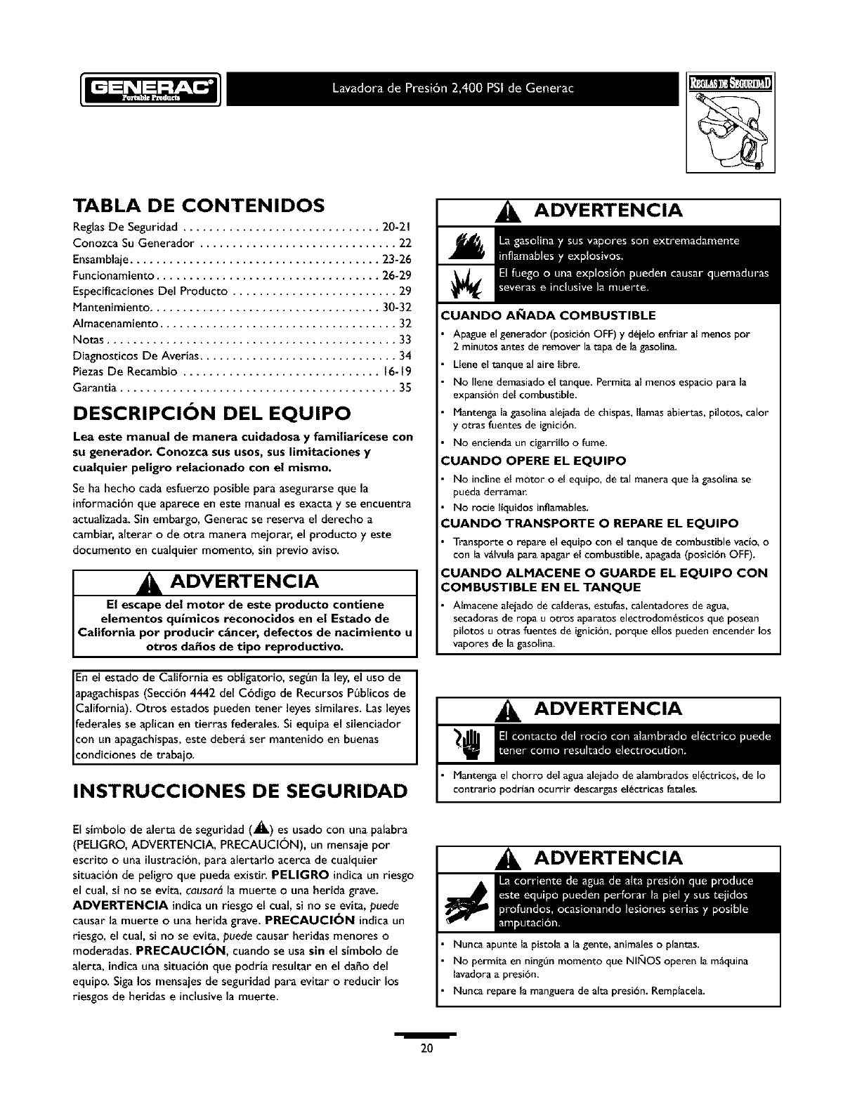 GENERAC Power Washer, Gas Manual L0403257 GENERAC Power Washer, Gas Owner's Manual, GENERAC Power Washer, Gas installation guides