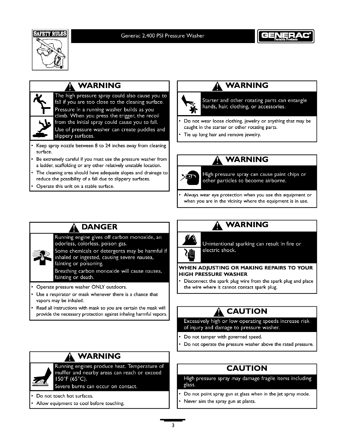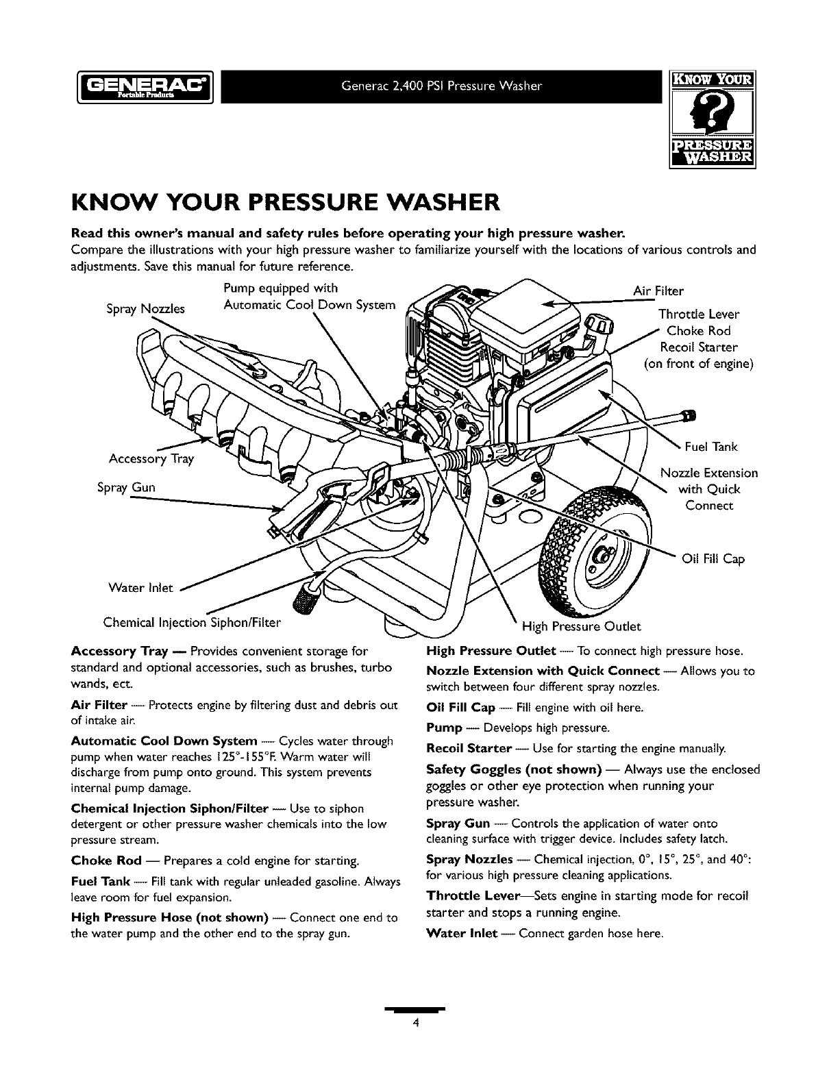 Know Your PressureWasher ...................... 4