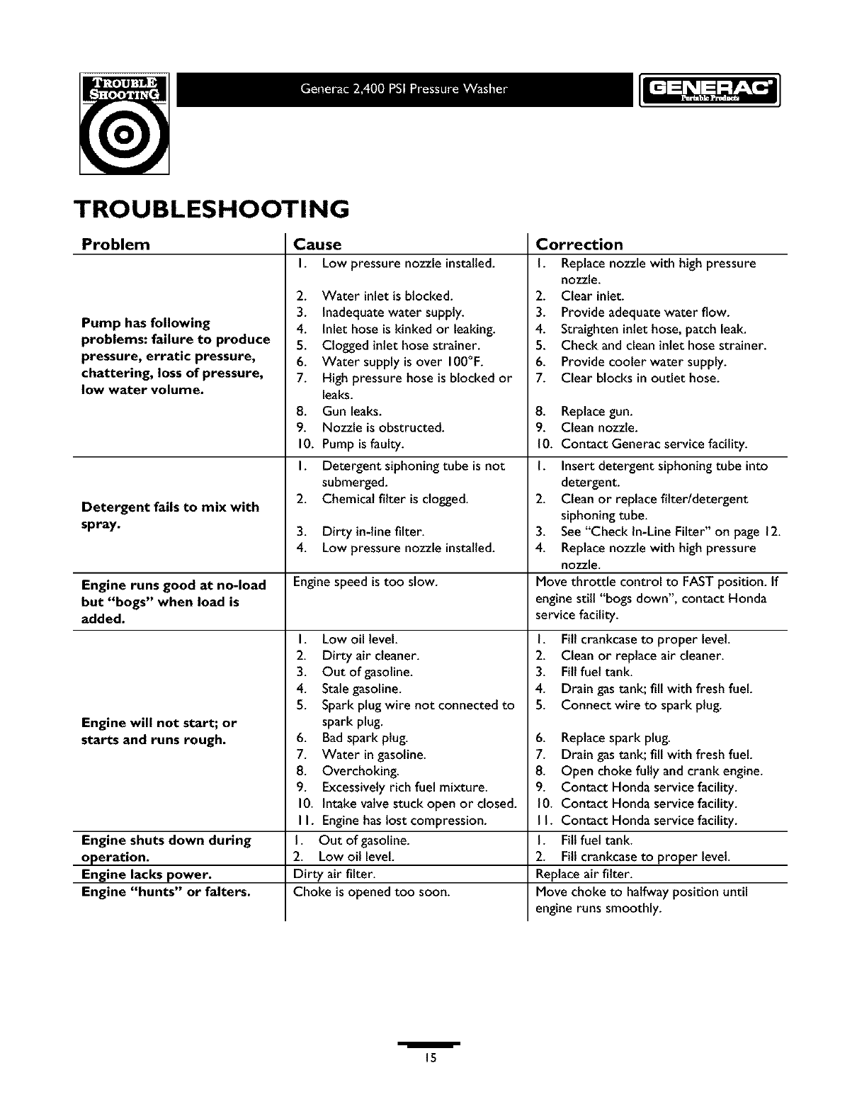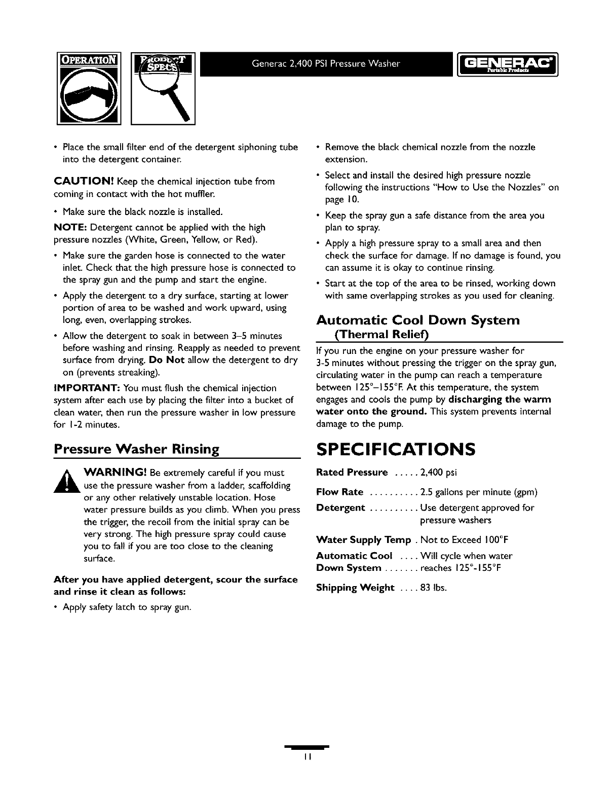 Generac 1675 0 User Manual PRESSURE WASHER Manuals And Guides L0403257