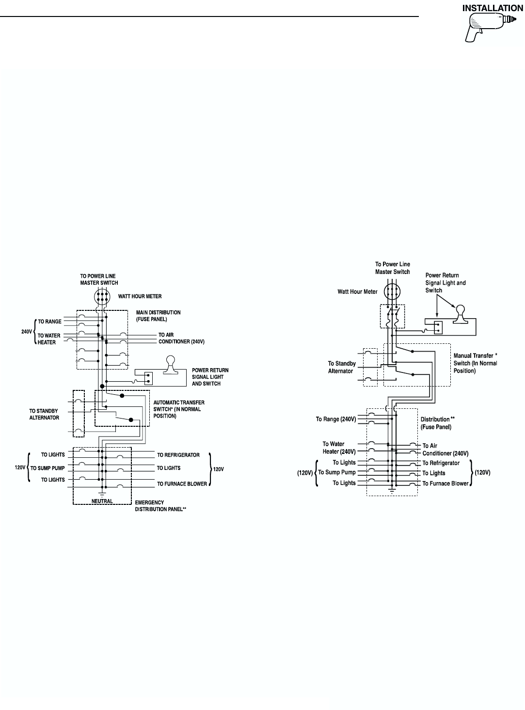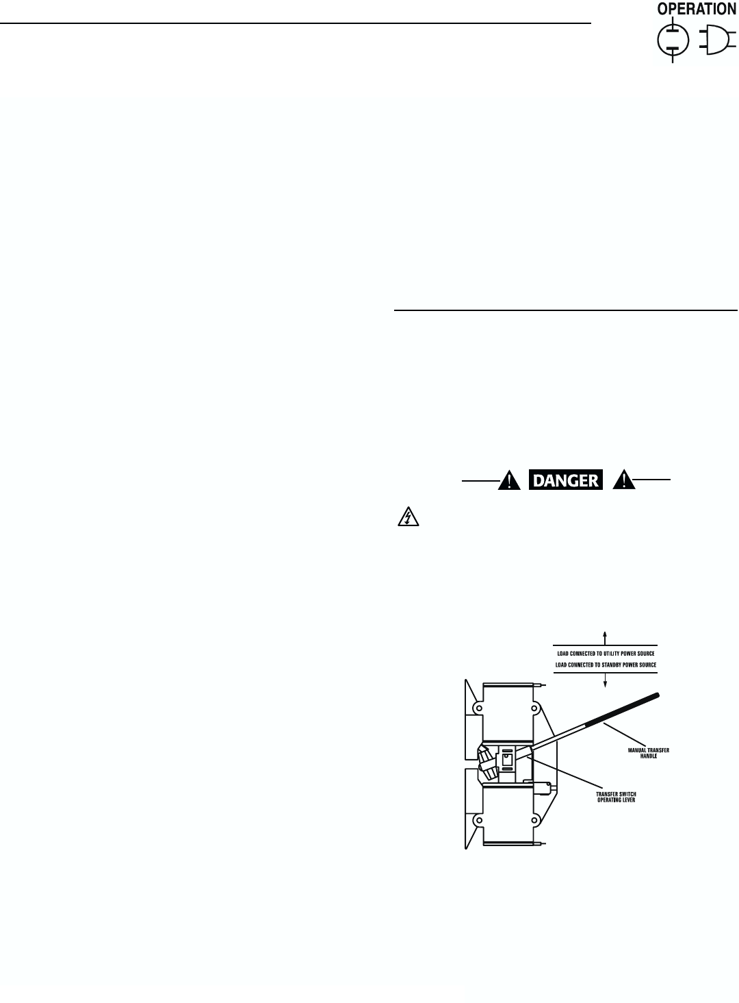 standby after utility 2. Defective transfer relay 2. Replace transfer relay.