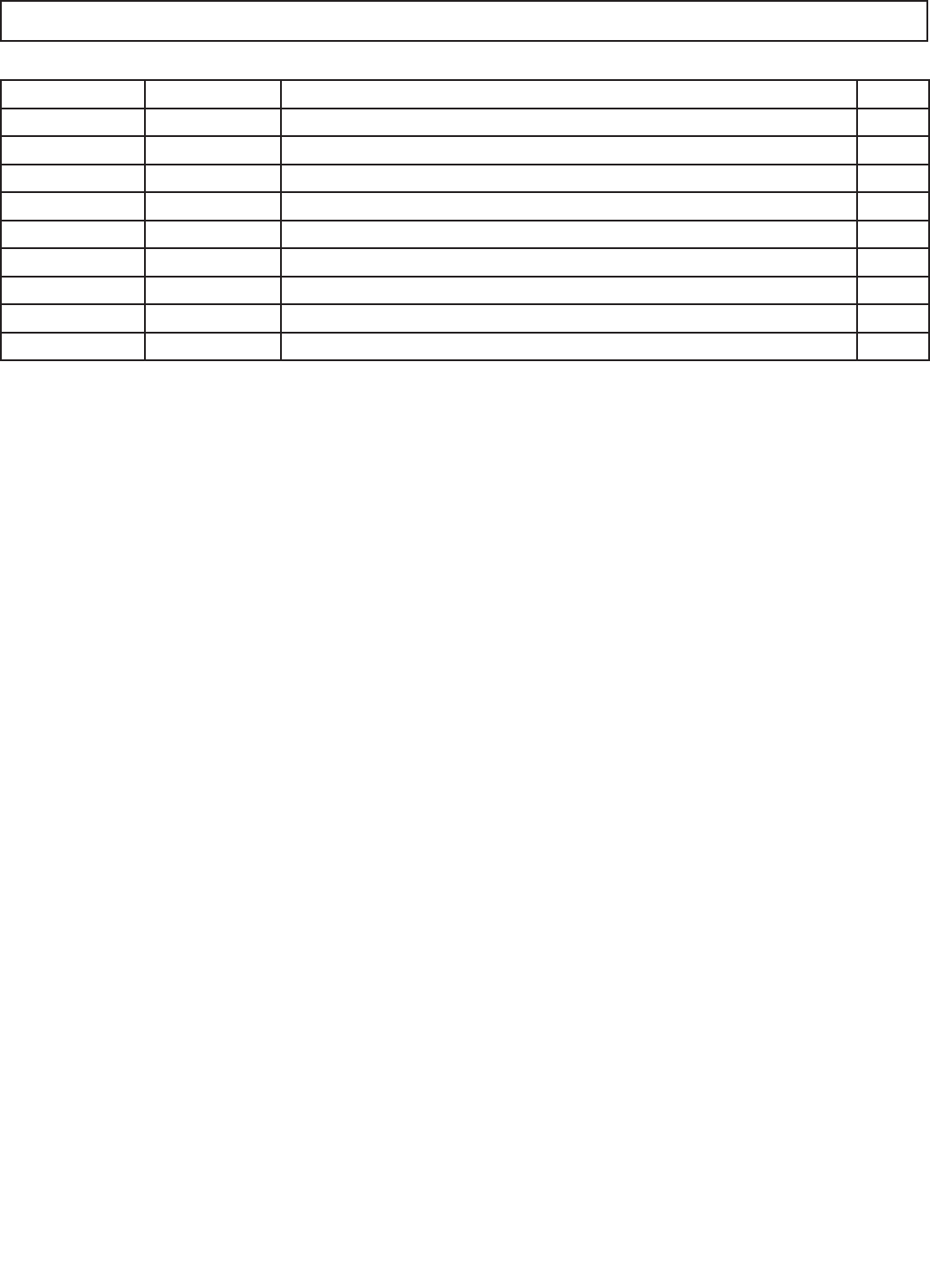Description Part Number Special Notes