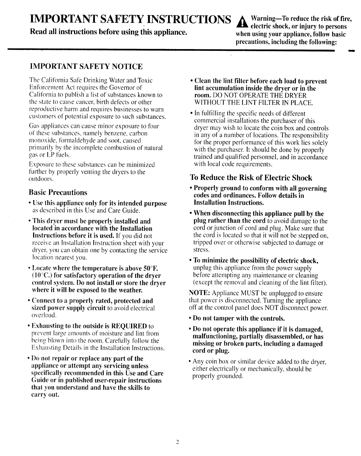 FOR GASDRYERS: YOUMUST POST IN APROMINENT LOCATION