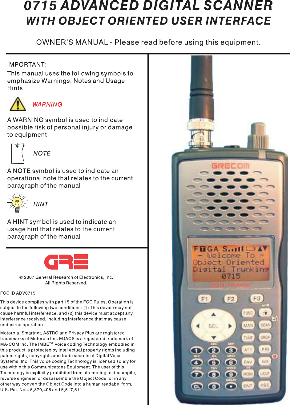 General Research of Electronics 0715 Scanning Receiver User Manual ADV0715 Manual