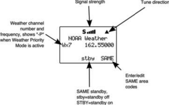 Weather frequencies 162.400, 162.425, 162.450, 162.475, 162.500,