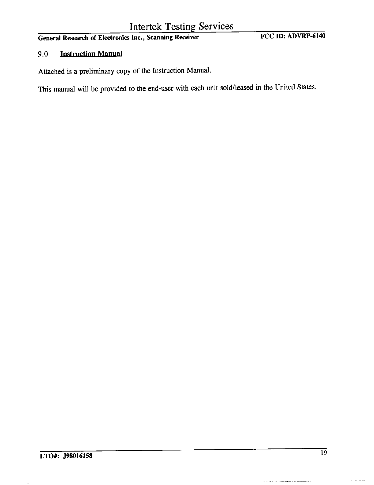 General Research of Electronics RP-6140 User Manual New Exhibit