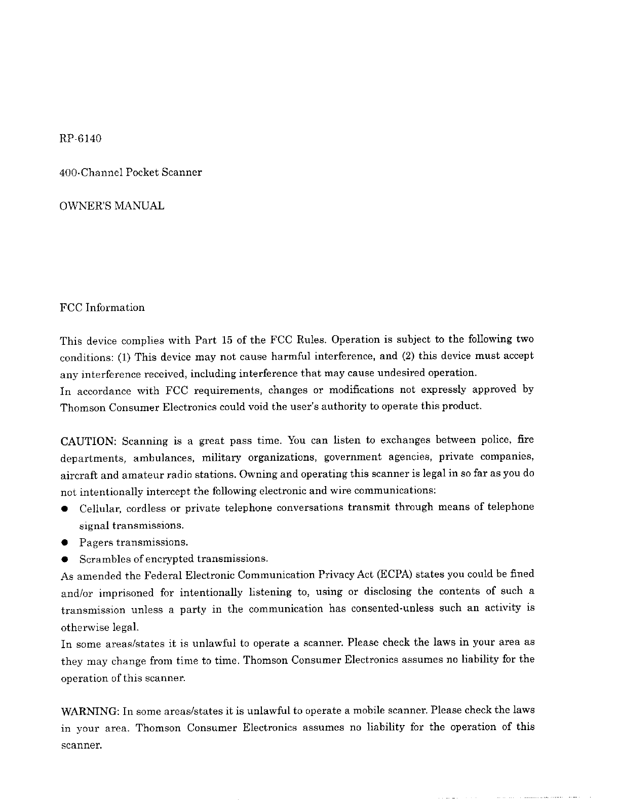 RP 6140 User Manual HTML Version