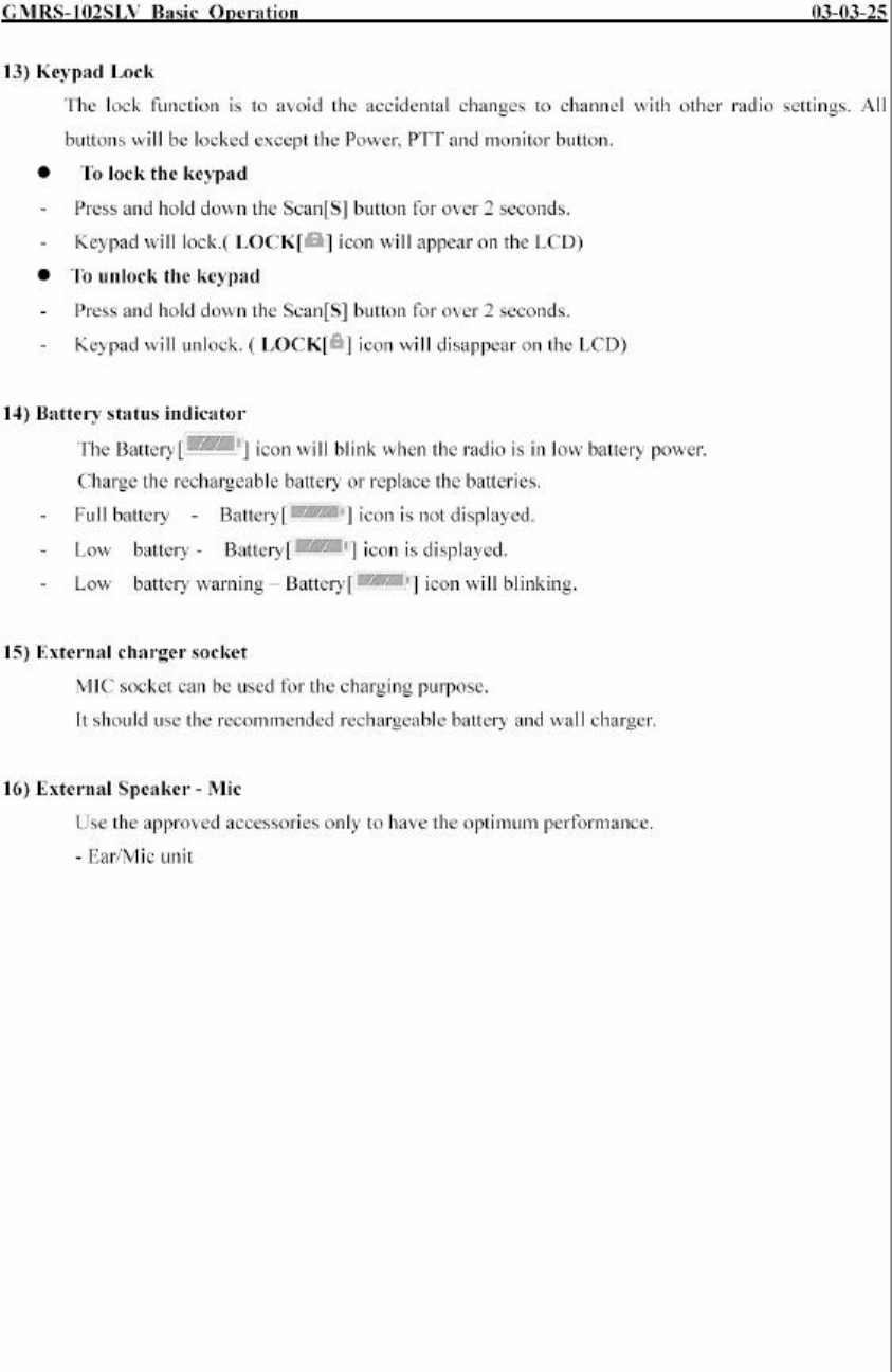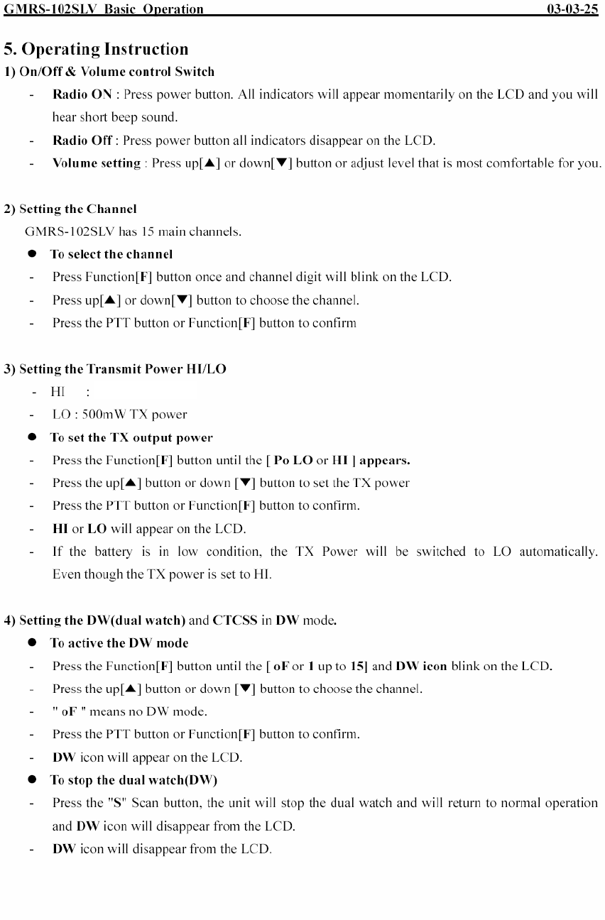 the user to place the unit in low power mode for FRS operation. The GMRS unit will automatically