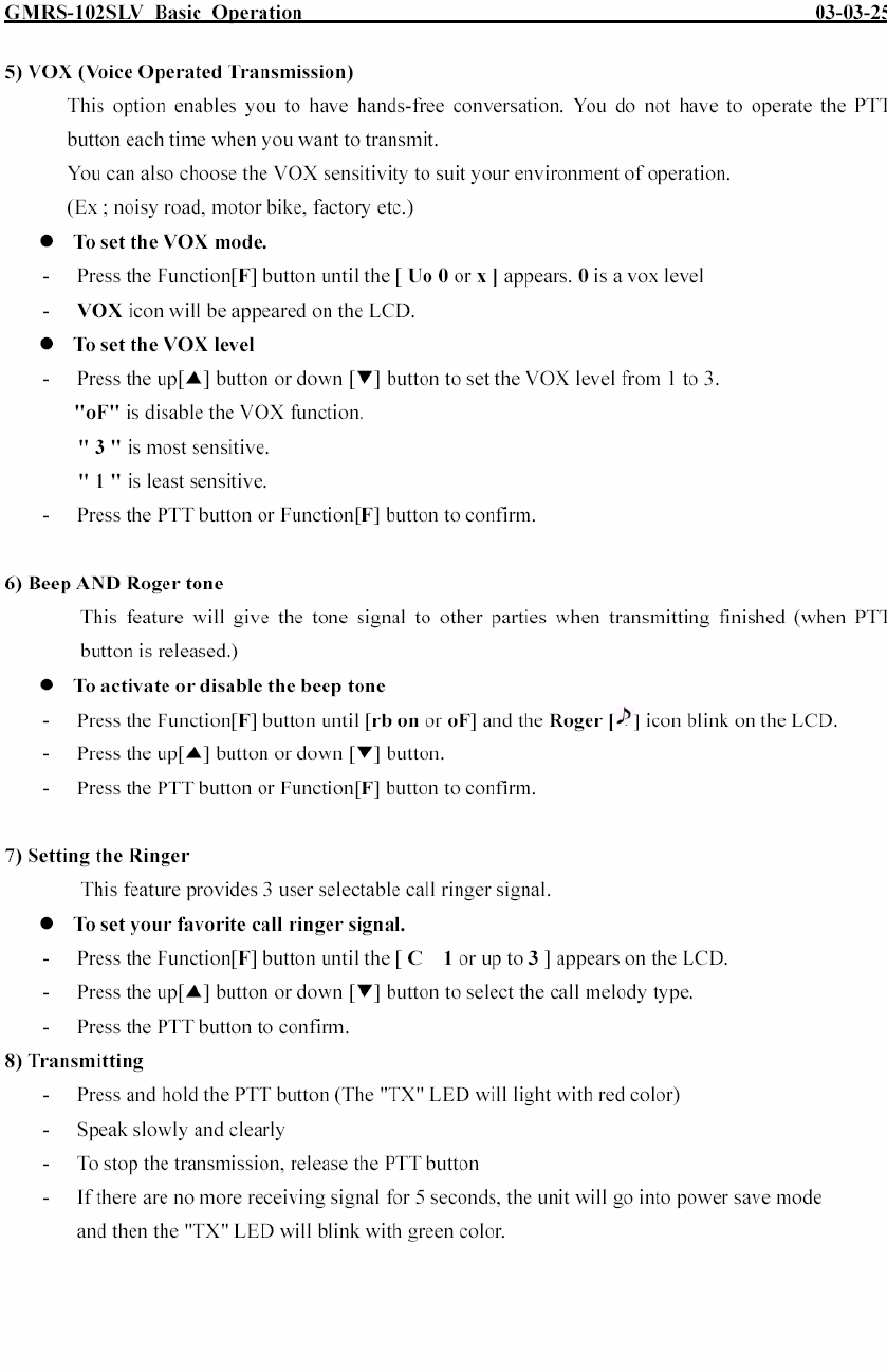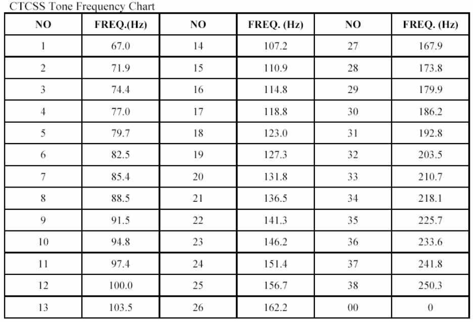 F CTCSS PWR Hi/Low DW VOX BEEP Tone Ringer Tone(CALL) F