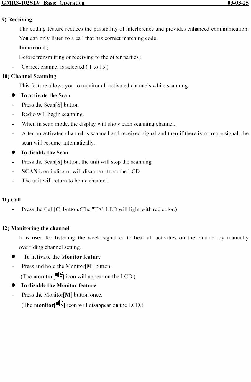 Genex Telecom GR2500 GMRS/ FRS UHF Transceiver User Manual PM3GR2500Man