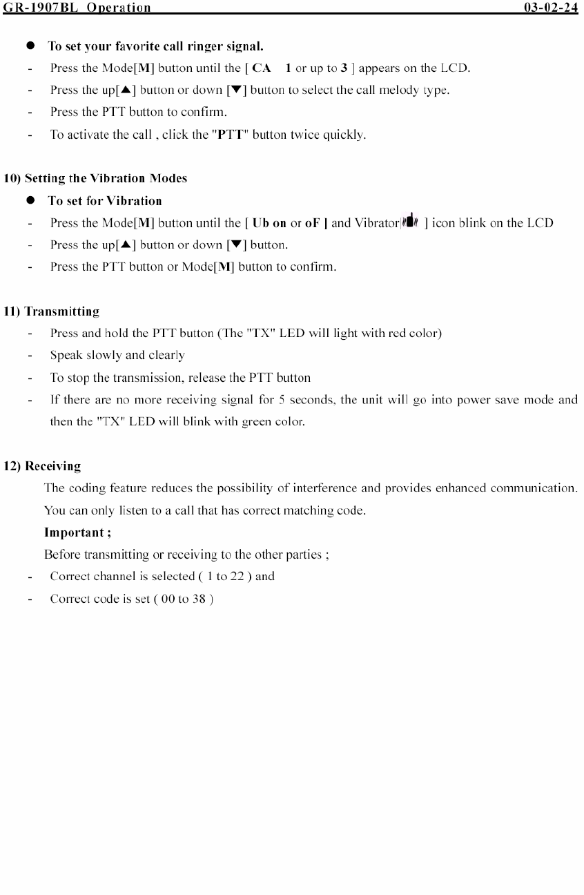 the user to place the unit in low power mode for FRS operation. The GMRS unit will automatically