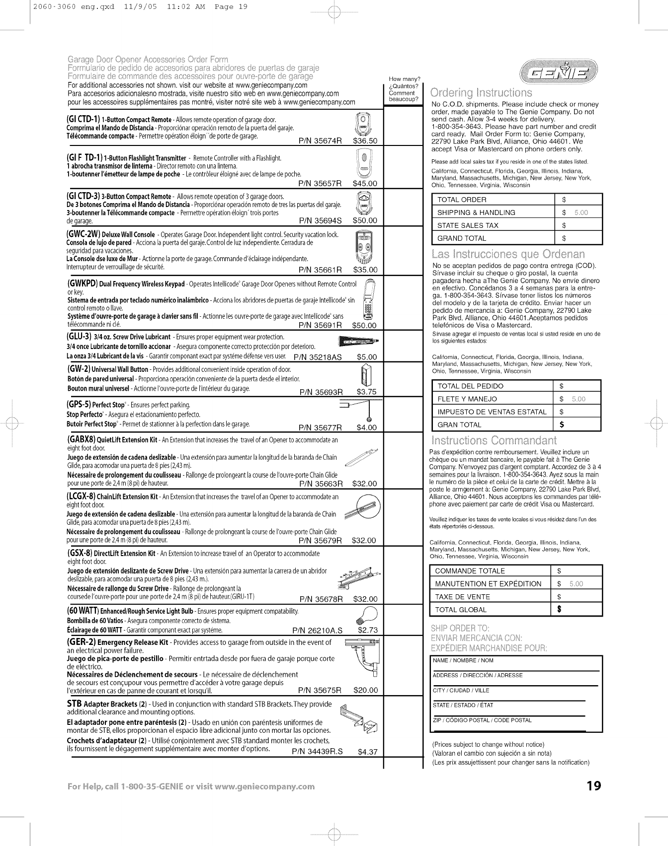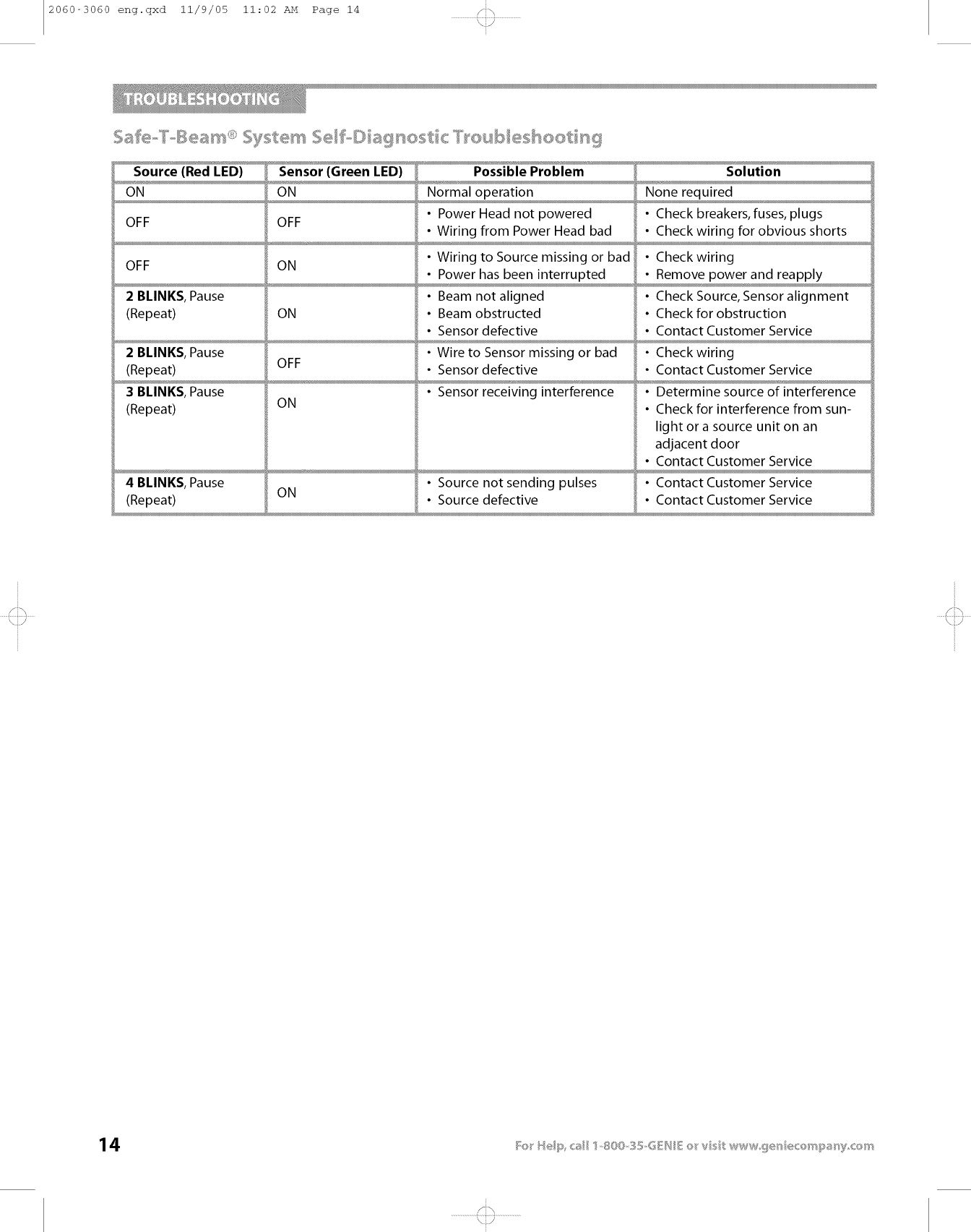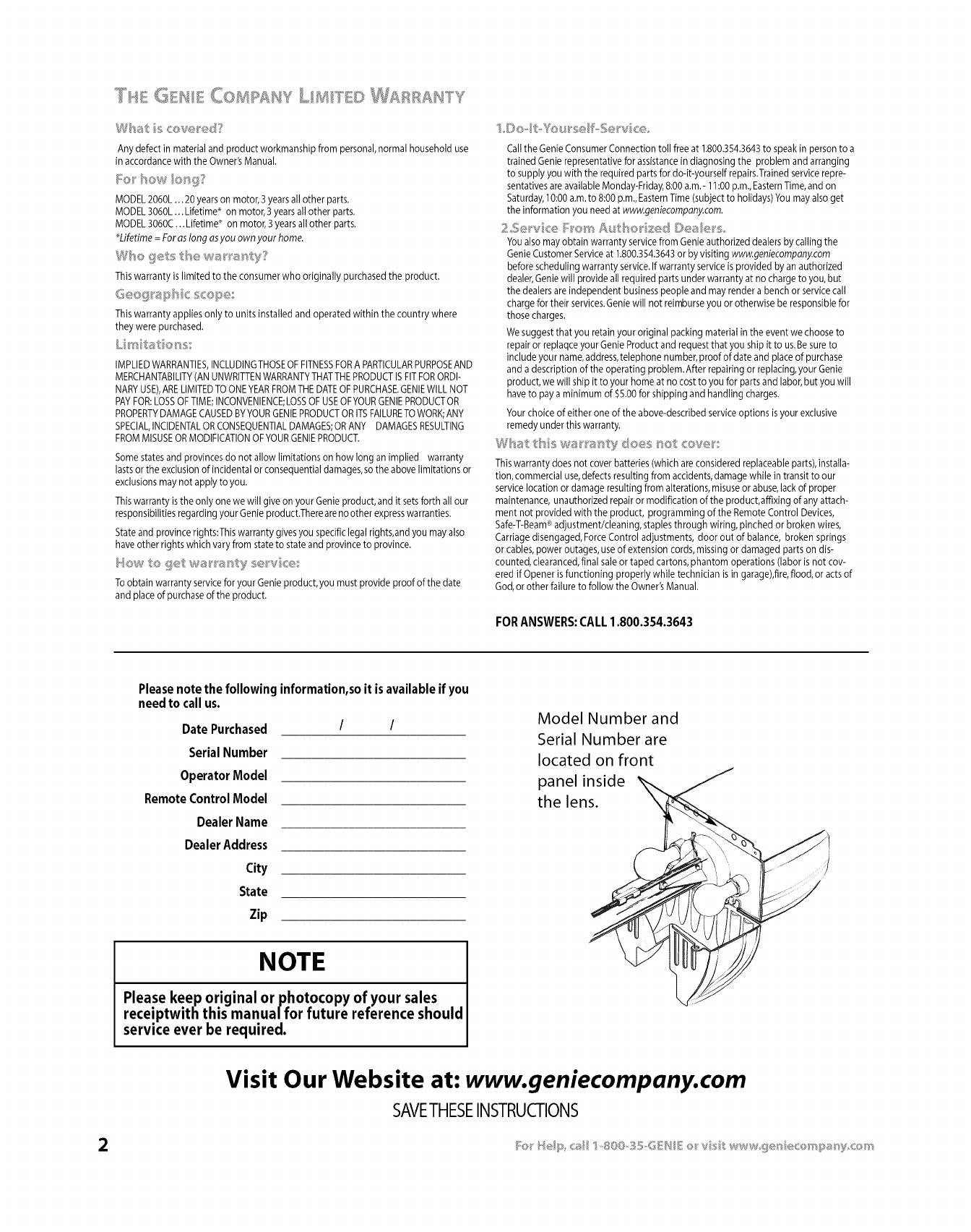 Genie Customer Service at 1.800.354.3643or by visiting www.geniecompany.com