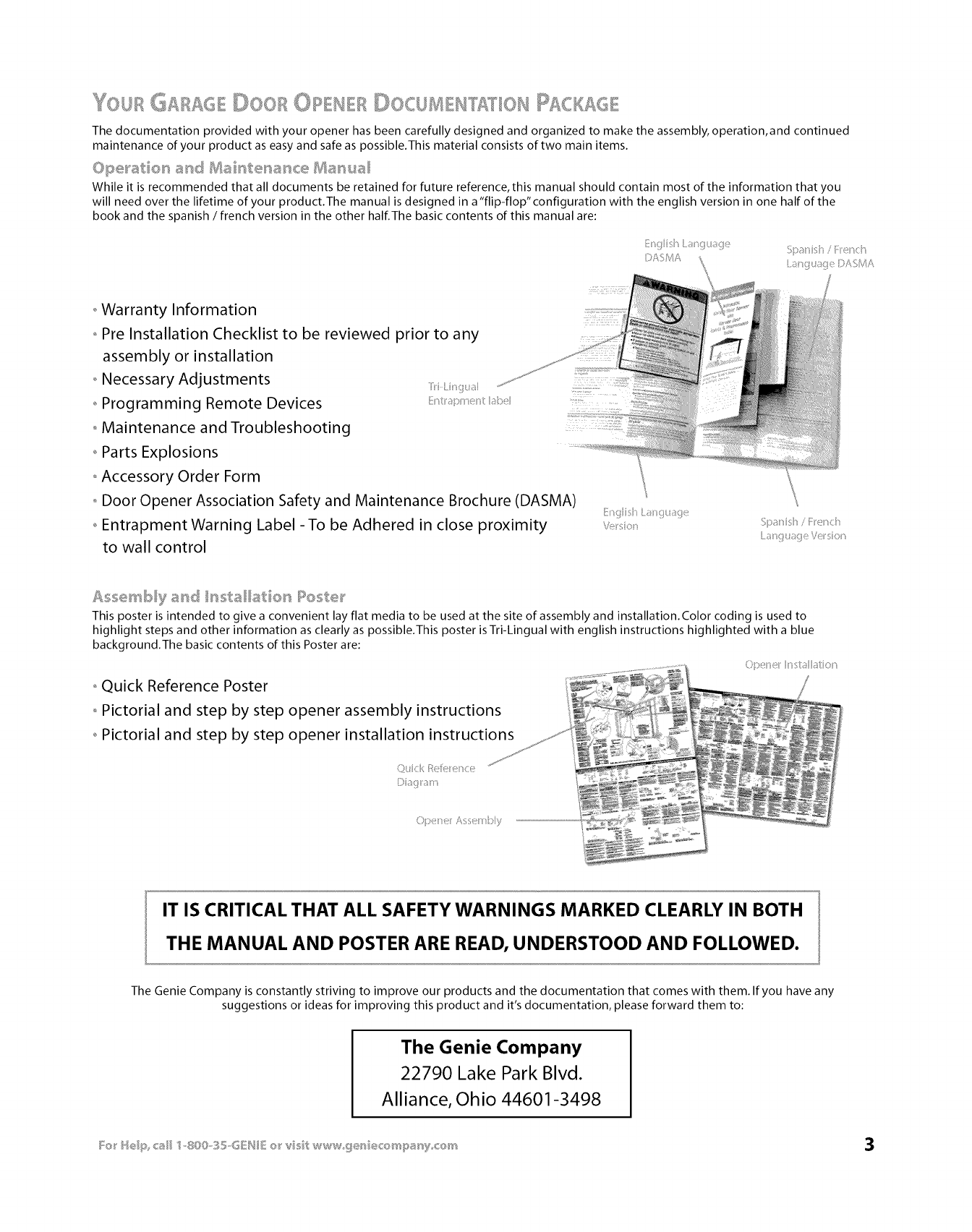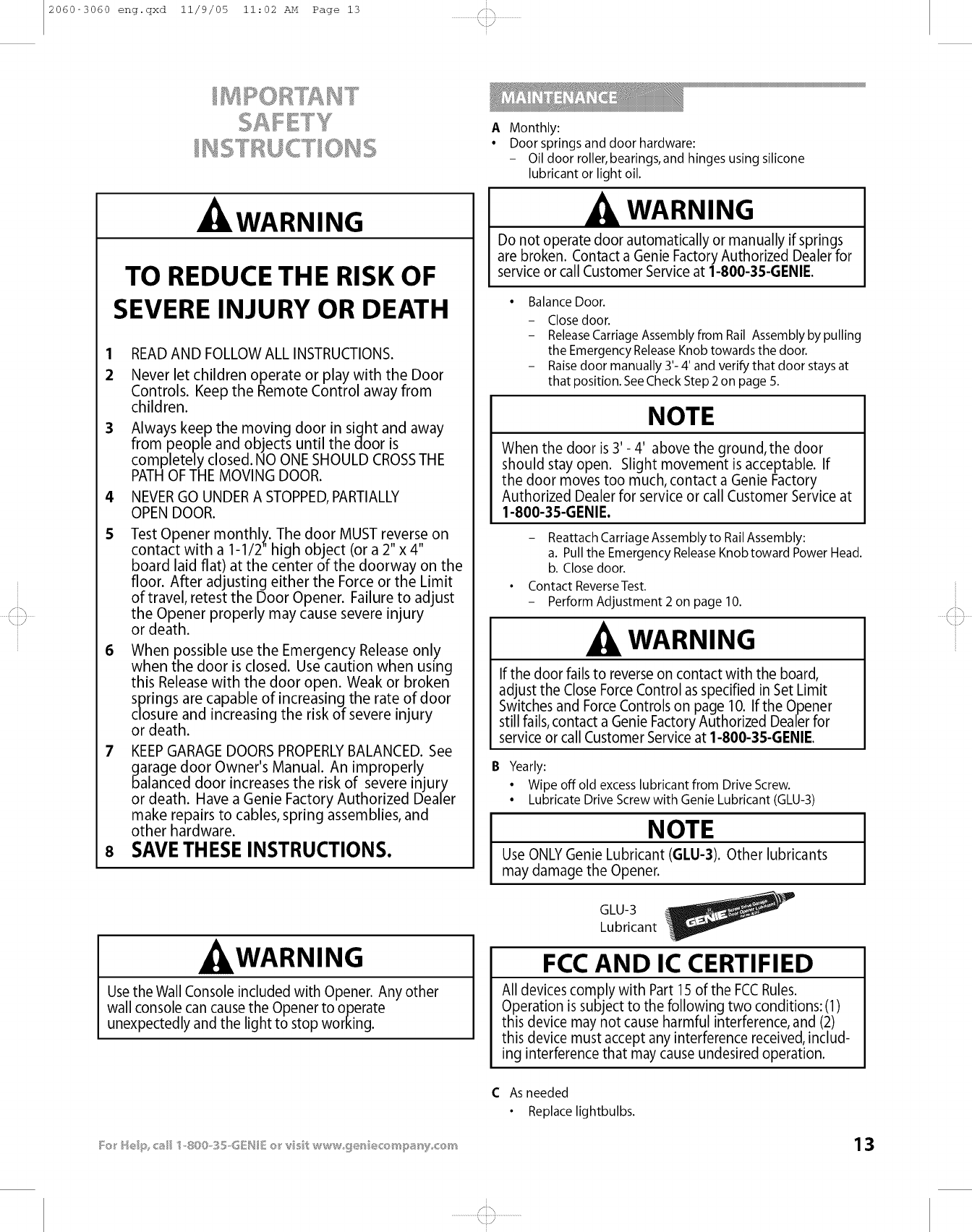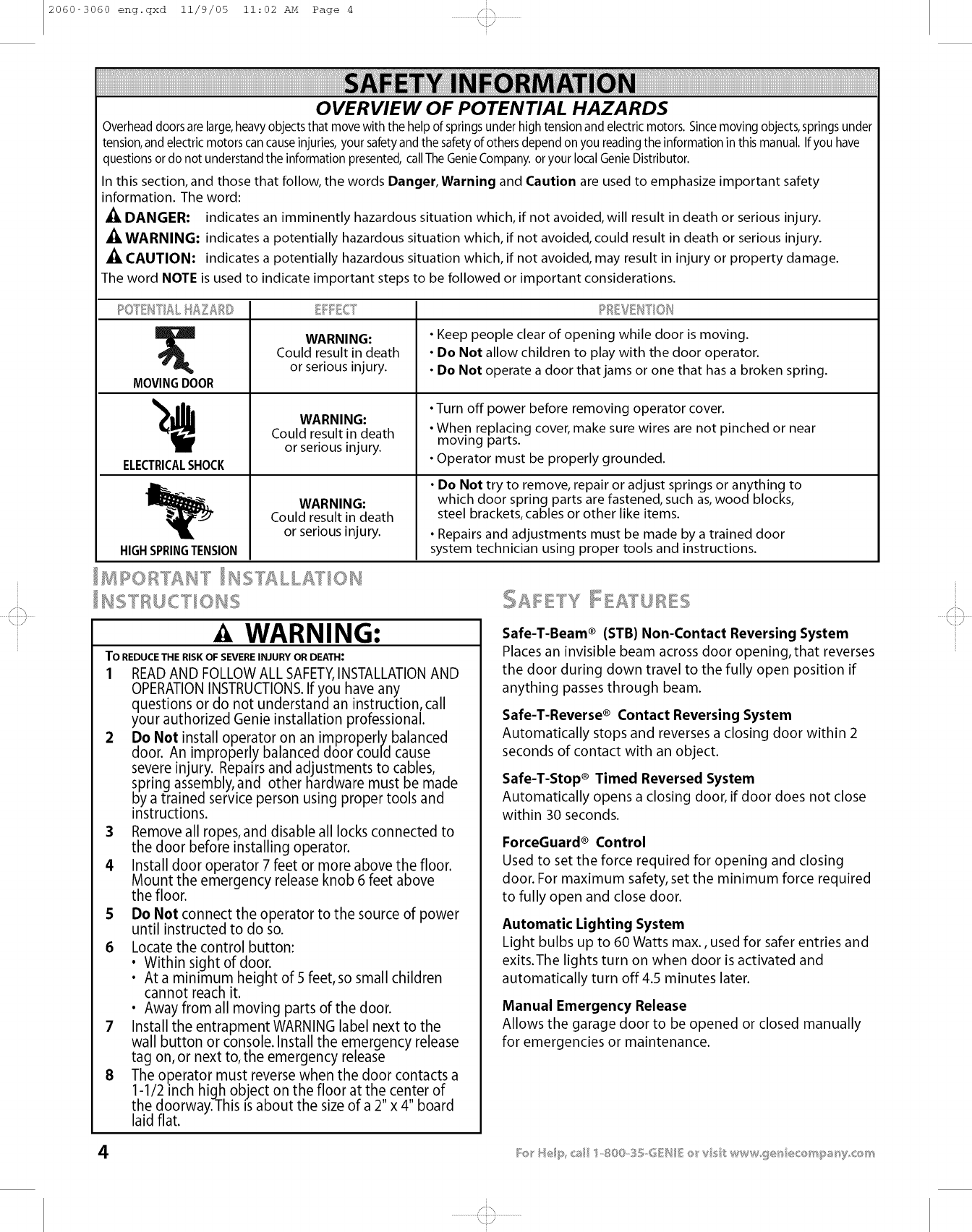 Genie Customer Service at 1.800.354.3643or by visiting www.geniecompany.com