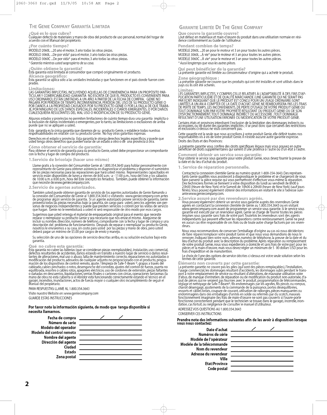 This warranty isthe only one we will give on your Genie product, and it sets forth all our