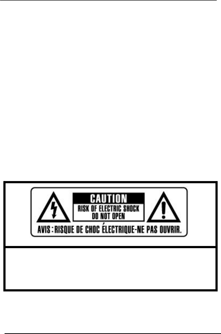 NO USER SERVICEABLE PARTS INSIDE. REFER SERVICING TO QUALIFIED