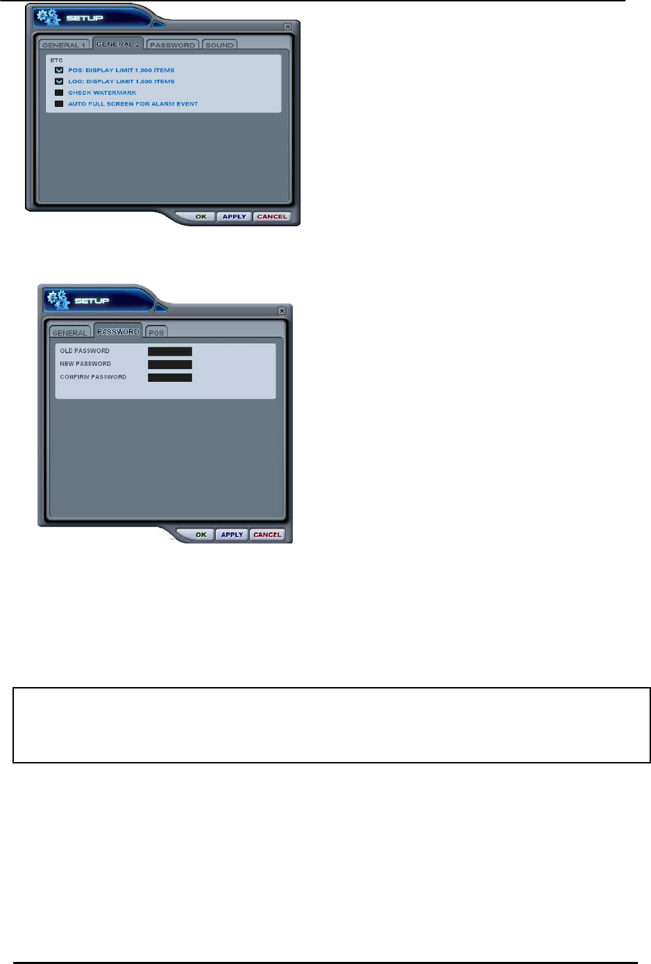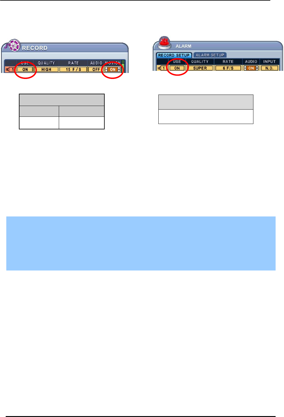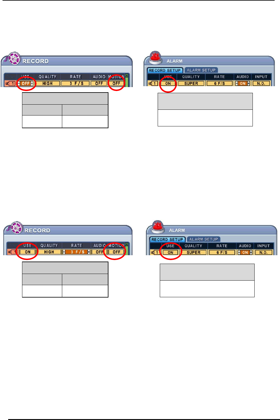 Recording Adjustments Pre-Alarm: 3 sec/ Post-Alarm: 10 sec. ~300 sec.