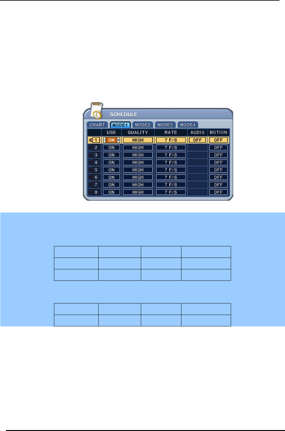 Recording Mode Manual, Schedule, Alarm, Motion