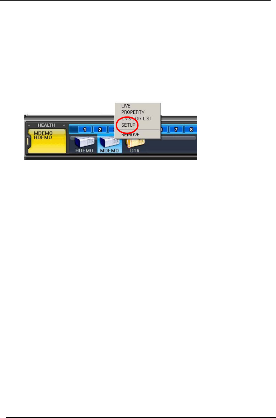 1) Select any camera for deletion during live monitoring. Context Menu appears on screen