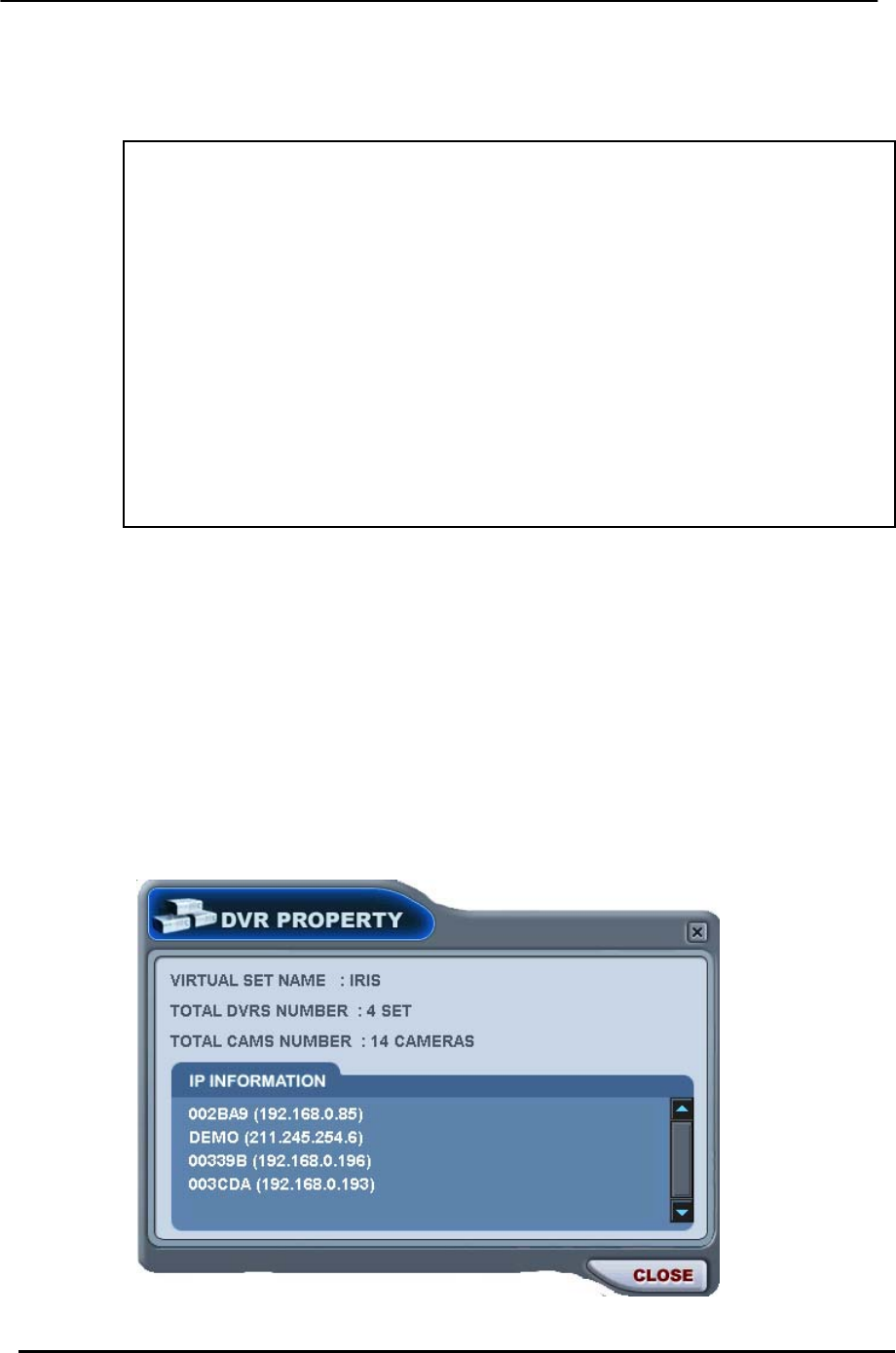 connected DVR’s, total number of selected Cameras and IP information of connected DVR’s.