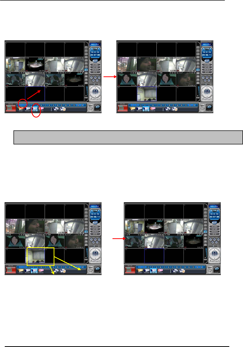 2) Any selected camera on a DVR.