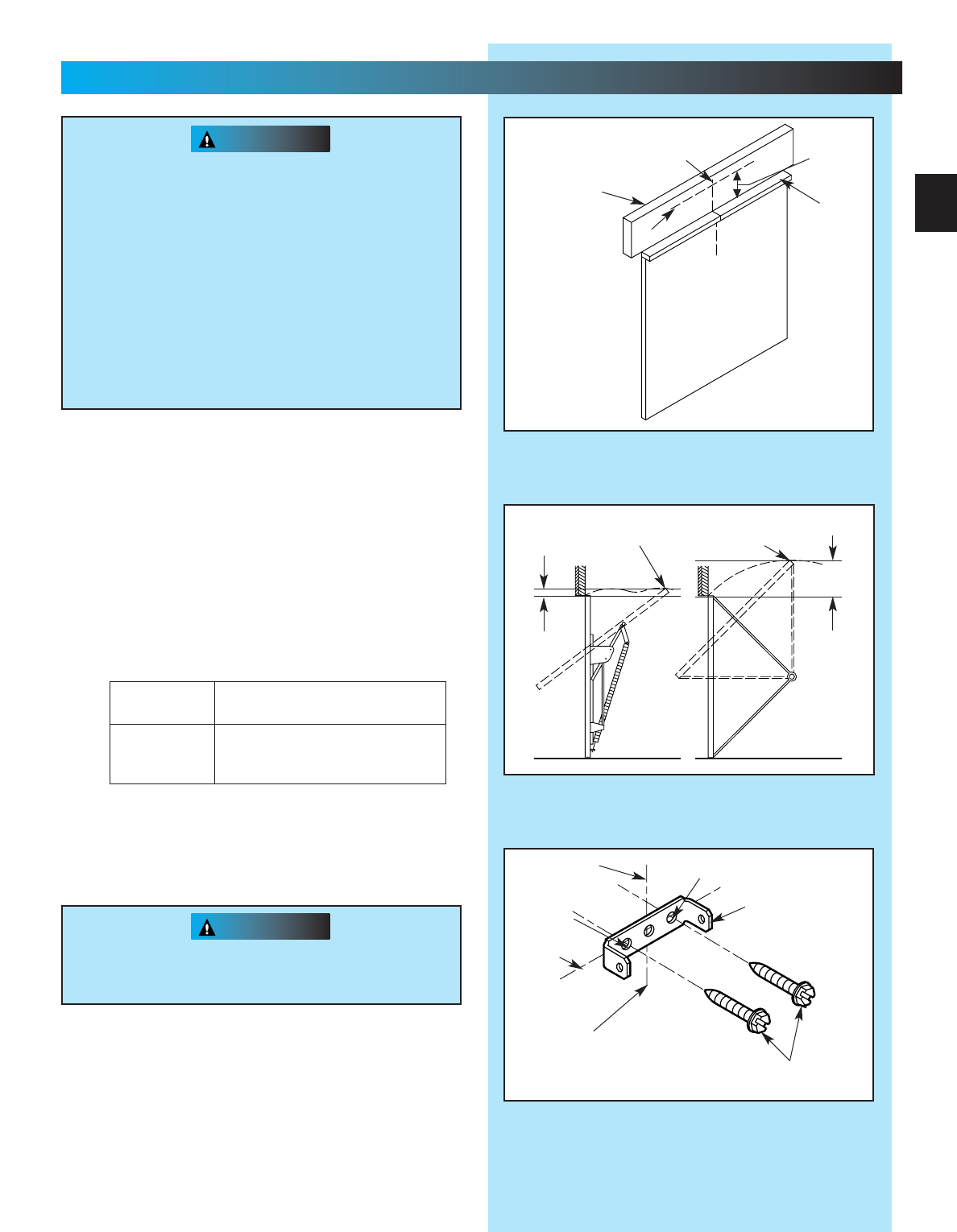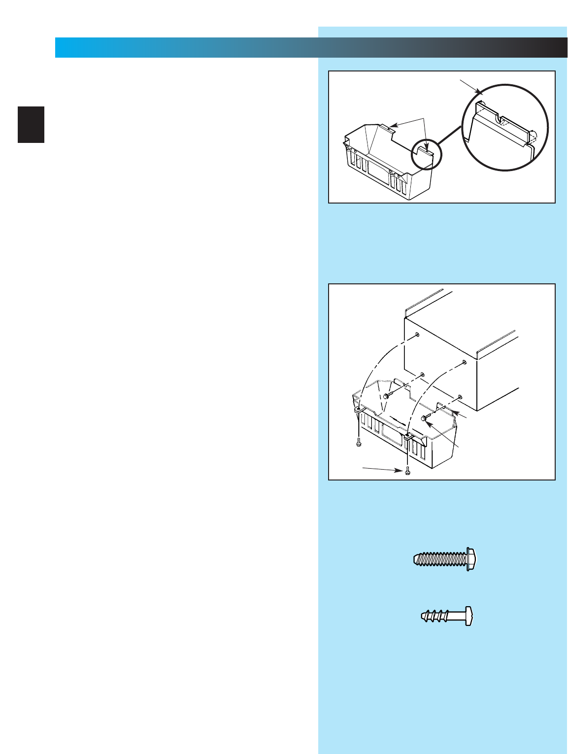 fasteners (not supplied) will be required.