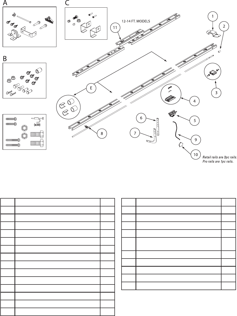 11 Parts Pack, Rail Connector, 12-14f t Models 1