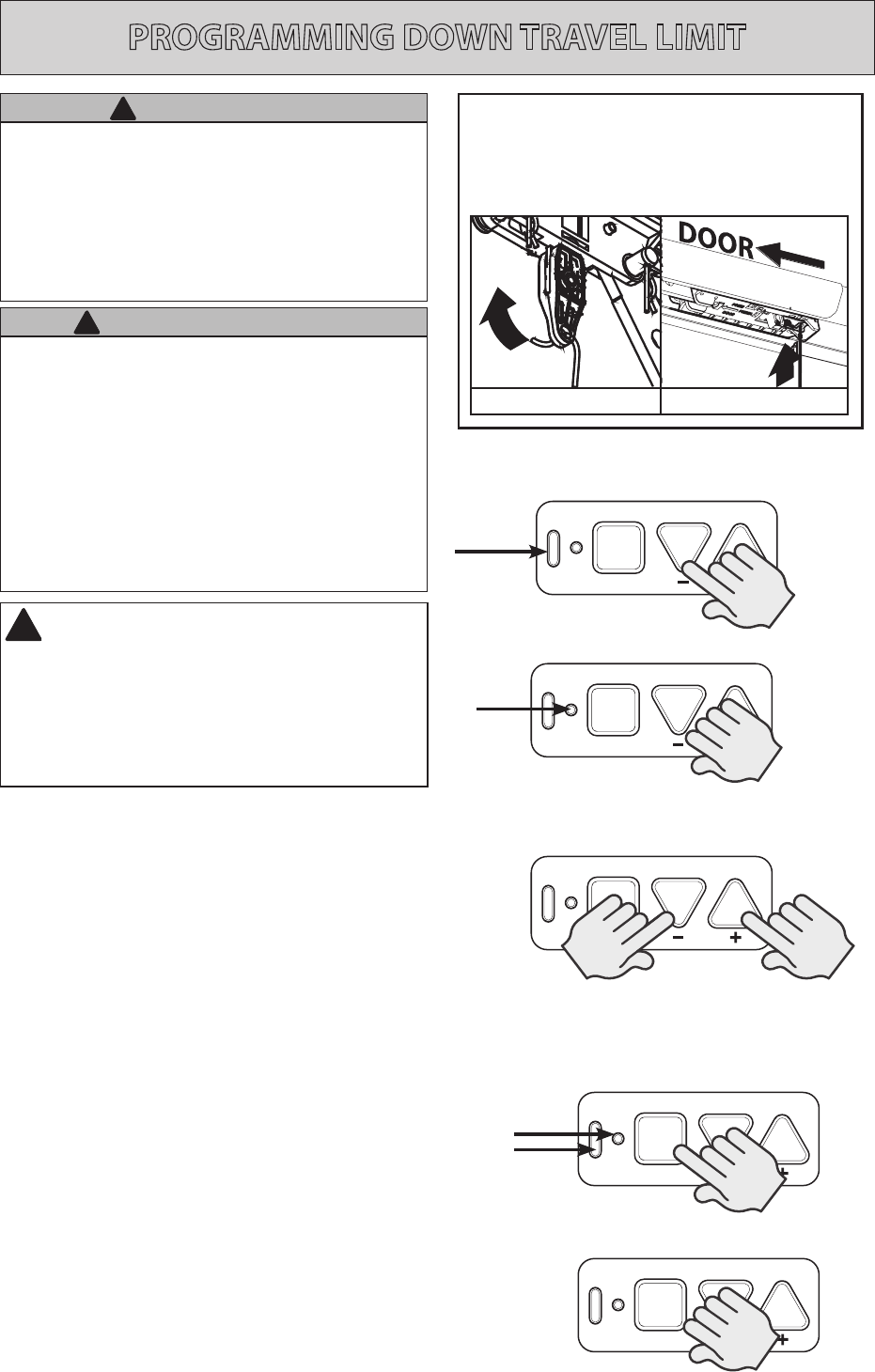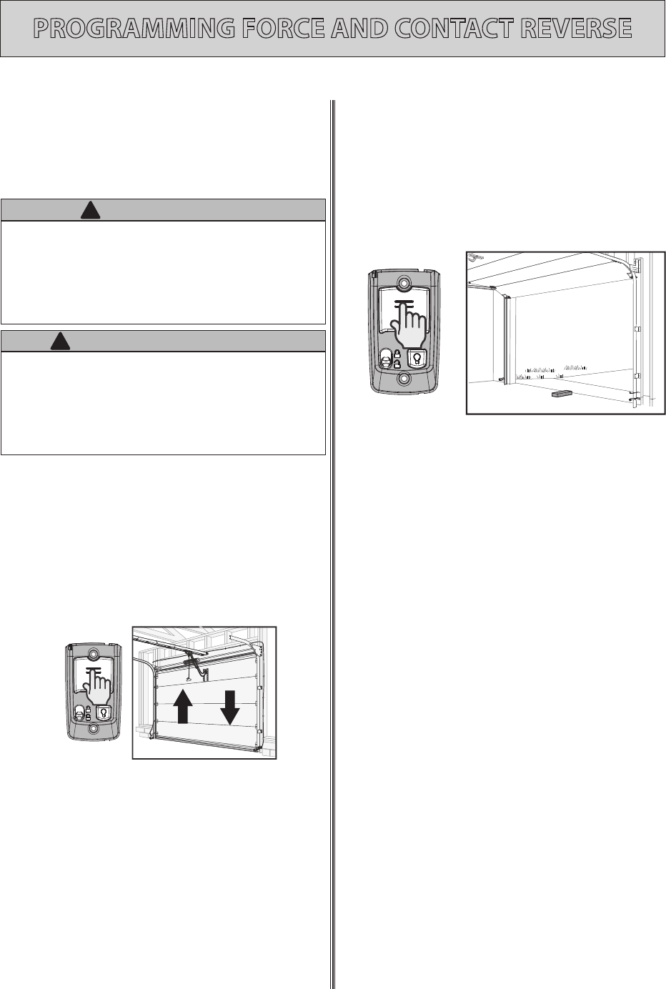 closes. This could lead to serious injury or death from being hit by a closing garage door or from being