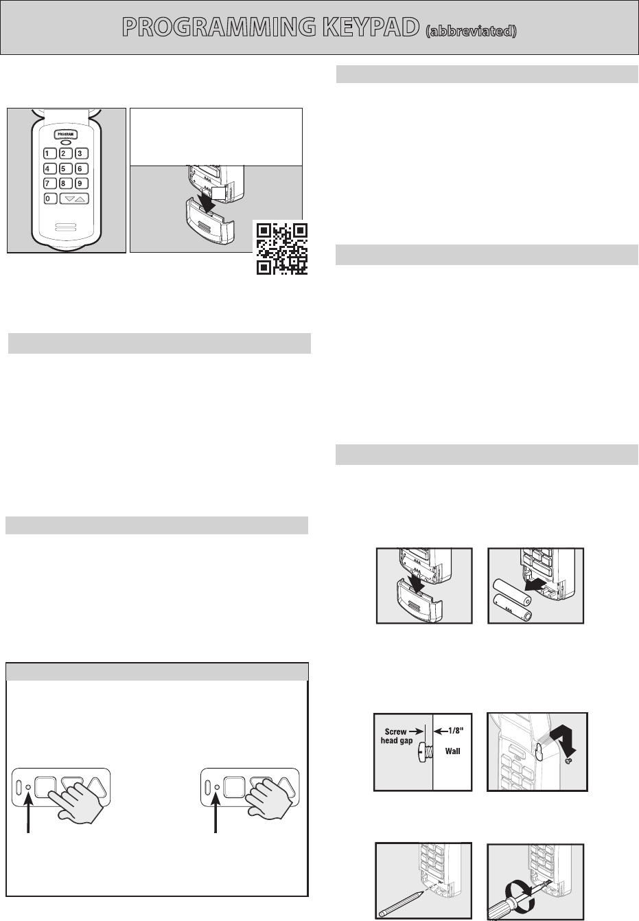 Keypad Programming* ........................................10