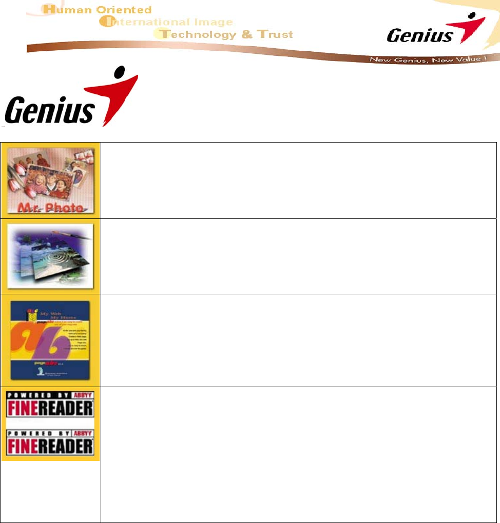 KYE Systems Corp. Tel: (886) 2 2995-6645 Fax: (886) 2 2995-4751 Web site: www.geniusnet.com.tw