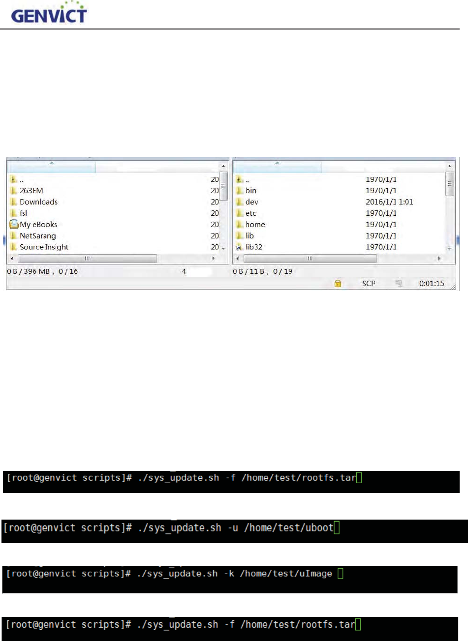 After accessing using WinSCP shown in Figure4-5-1, with PC’s file directory on the left and