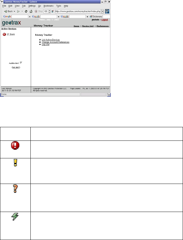 instructing you on how to access the tracking information on the GeoTrax website. A list