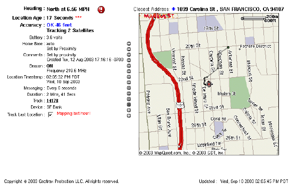 Closest Address: Based on the latitude and longitude of the device, the geotrax server