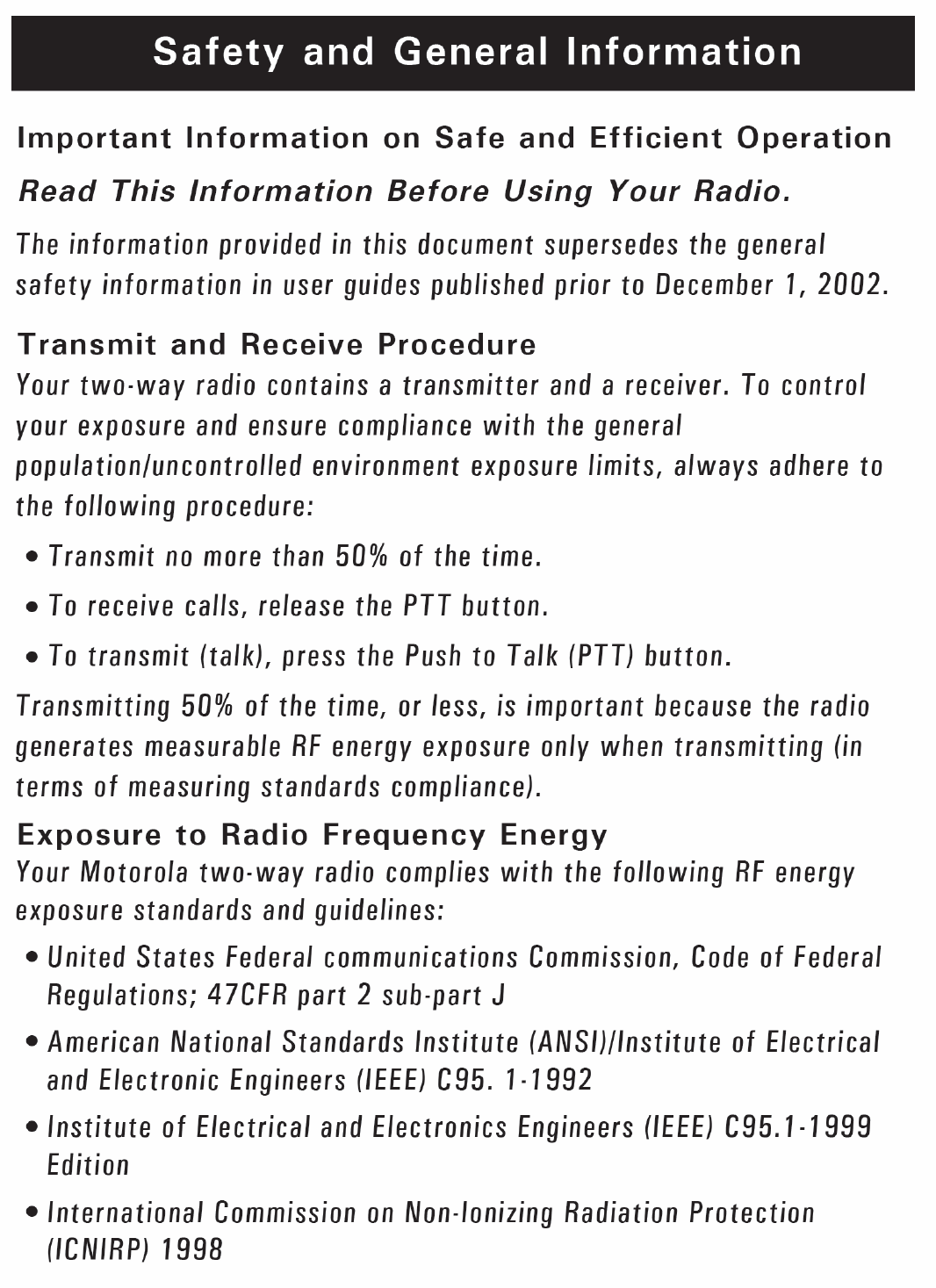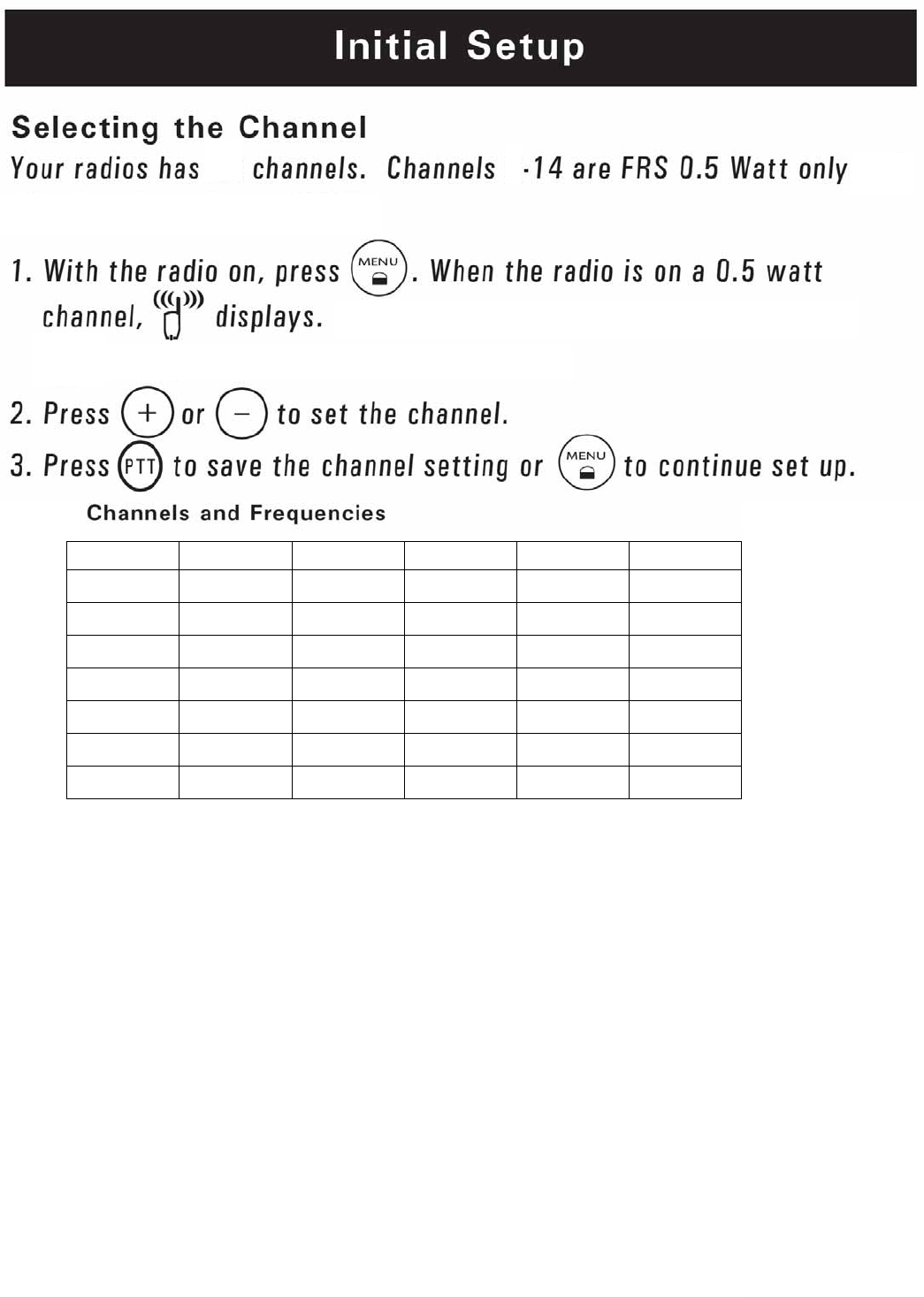 Channel Frequency Description Channel Frequency Description