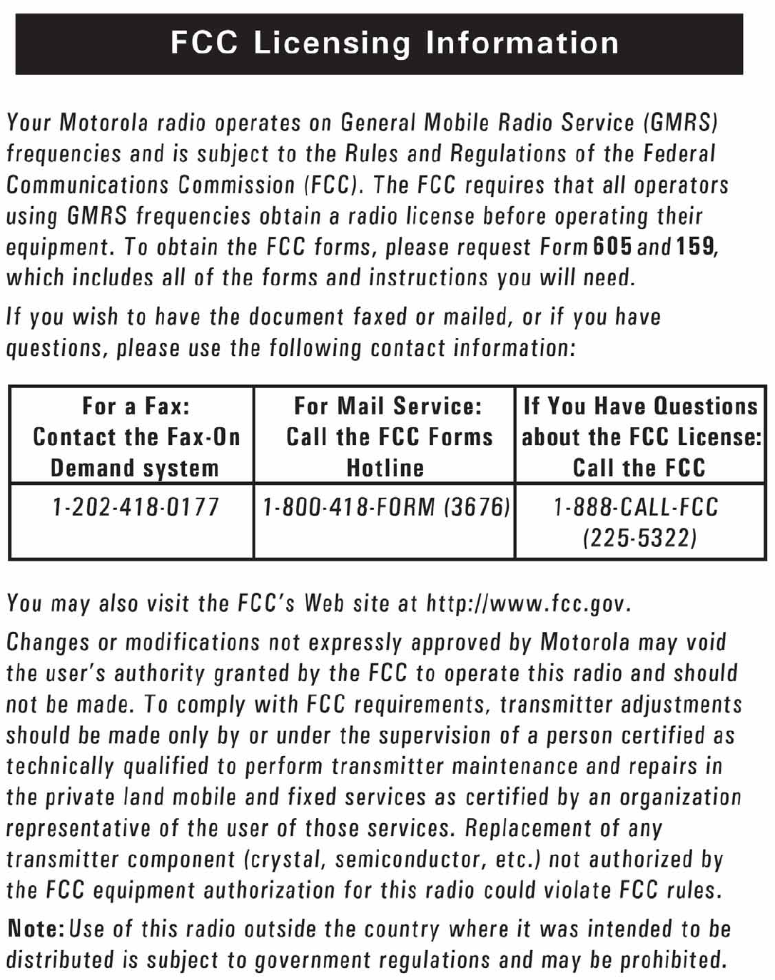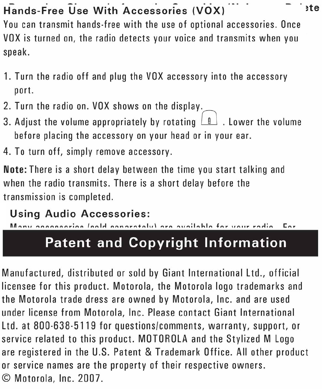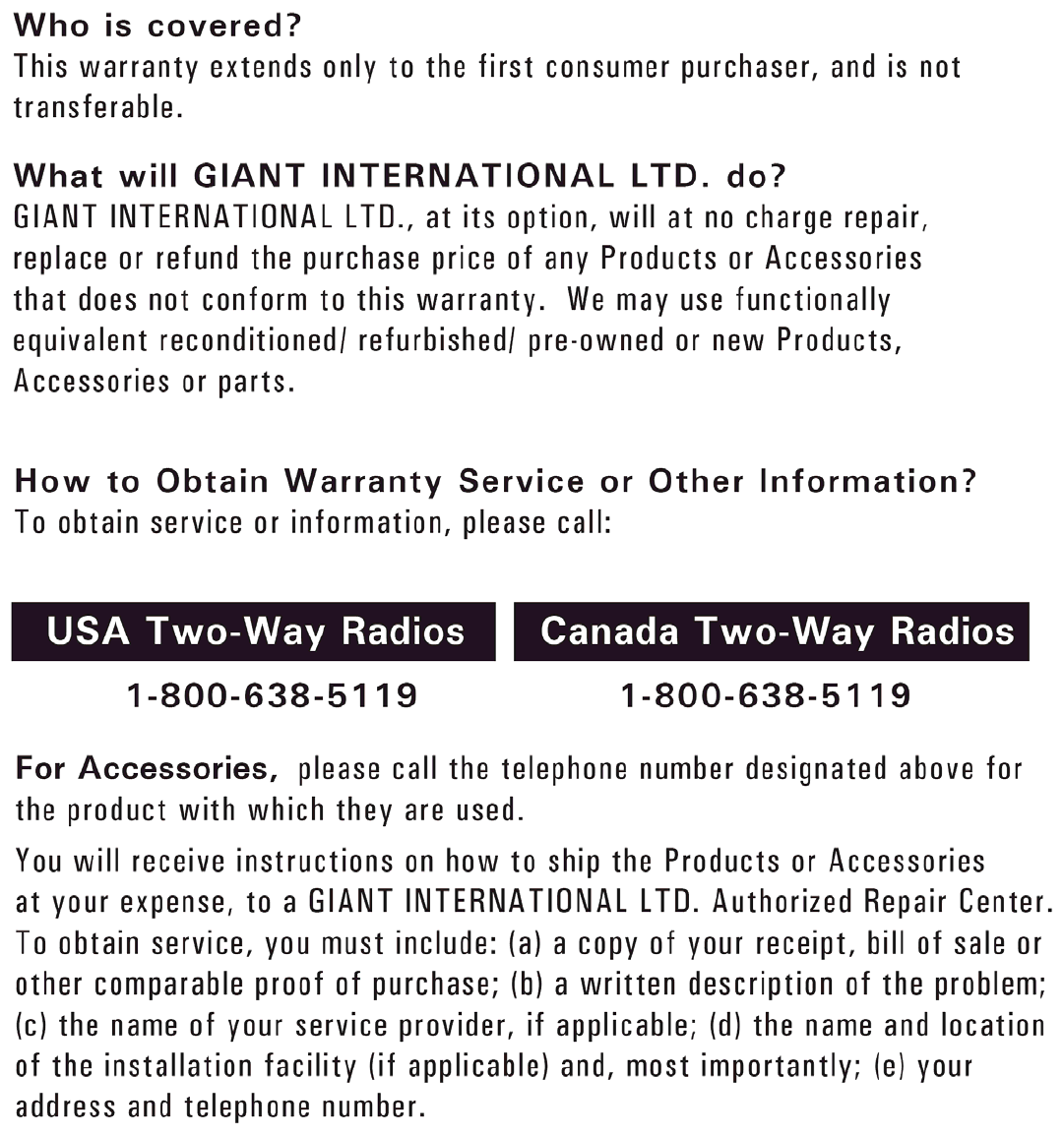 Giant Electronics FV725 Two Way Radio with FRS User Manual