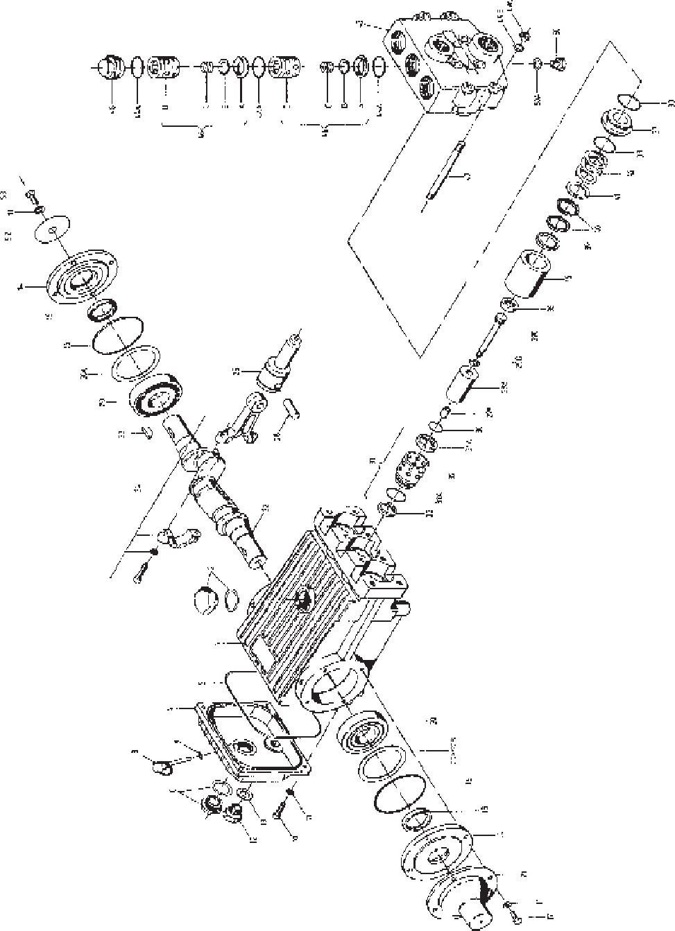 the valve casing. Take seal sleeve (35) out of the guides in the crankcase (1) and remove