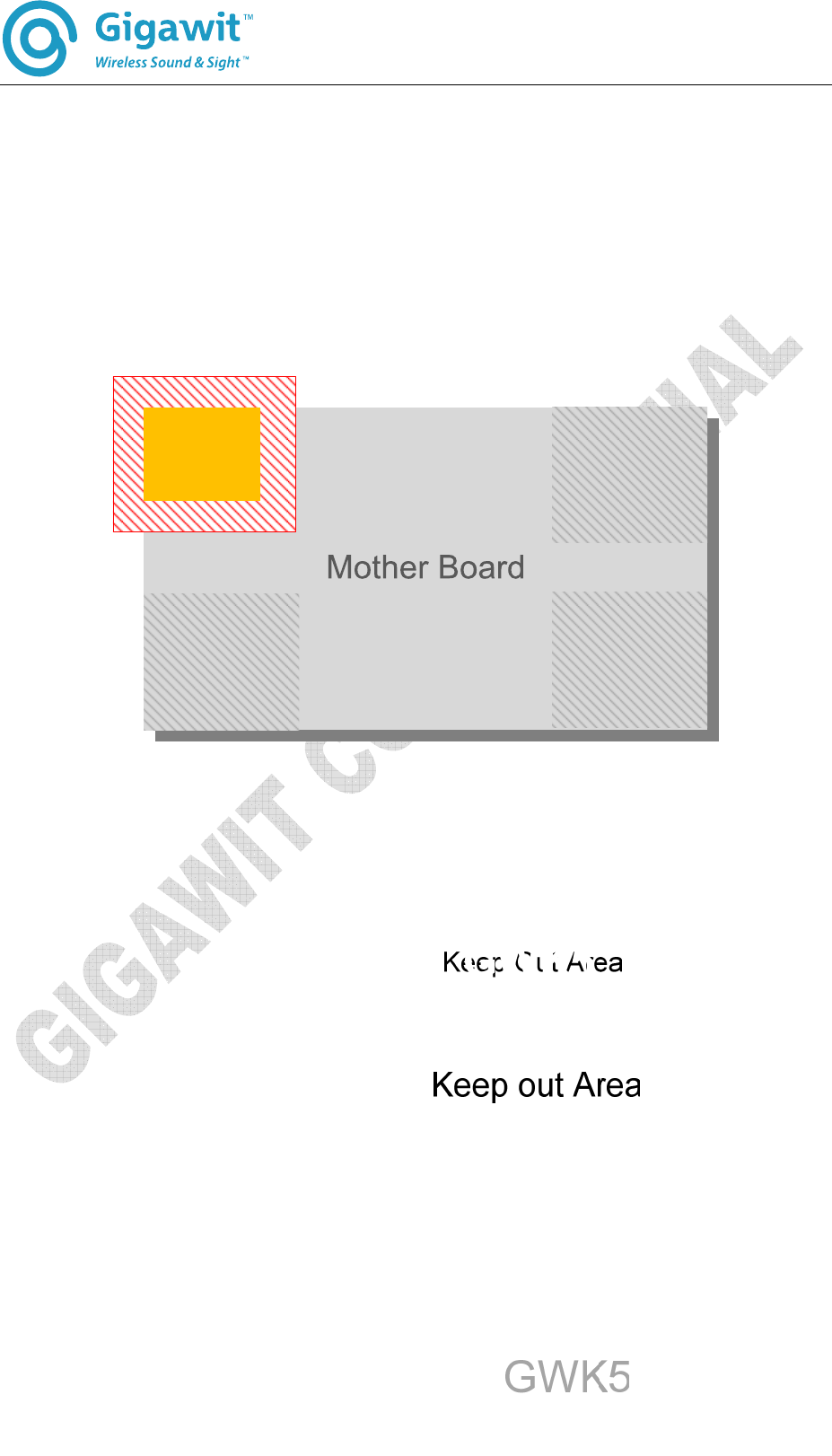 The figure below illustrates how to mount the GWK5 module. Improper mounting will decrease the RF