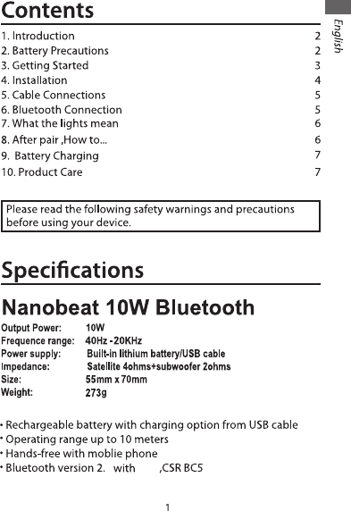 GiiNii Global Limited Bluetooth Vibration Speaker Users Manual