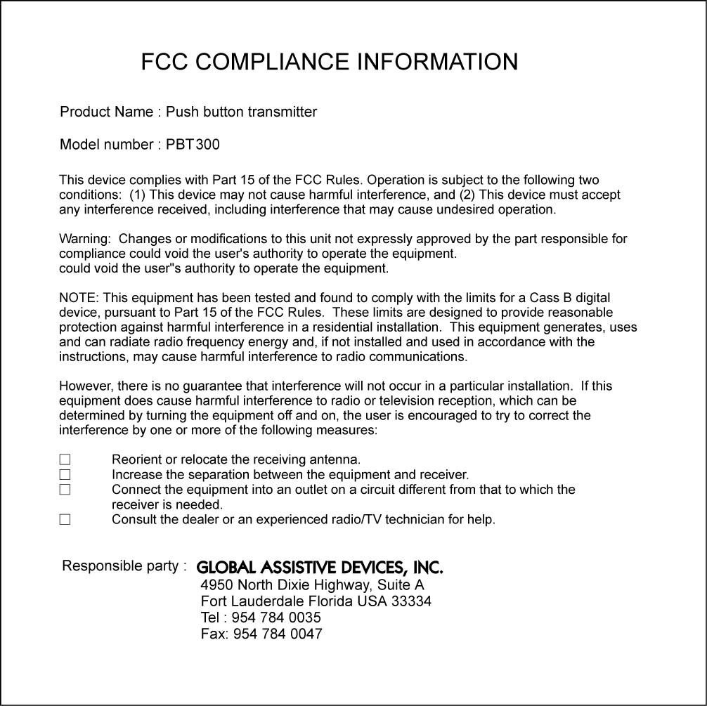 Global Assistive Devices PBT300 Multi Function Light Set User Manual