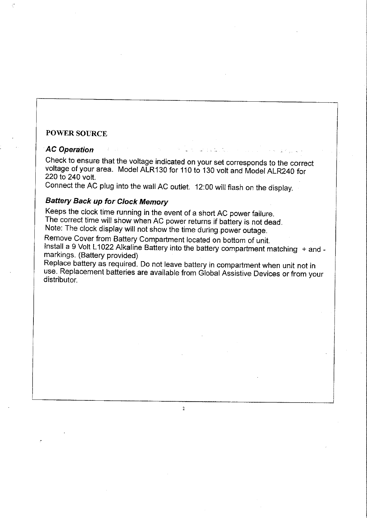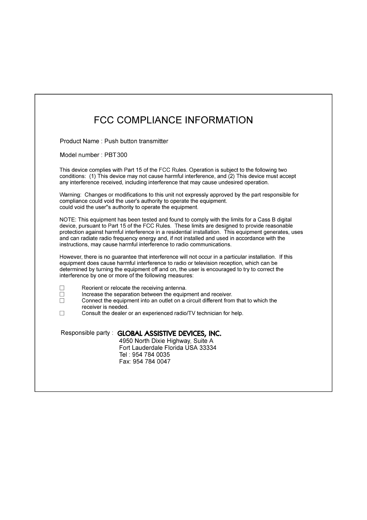 Global Assistive Devices PBT300 Multi Function Light Set User Manual