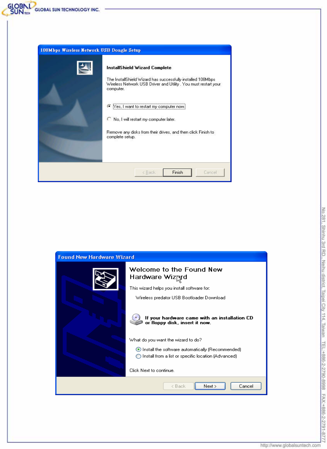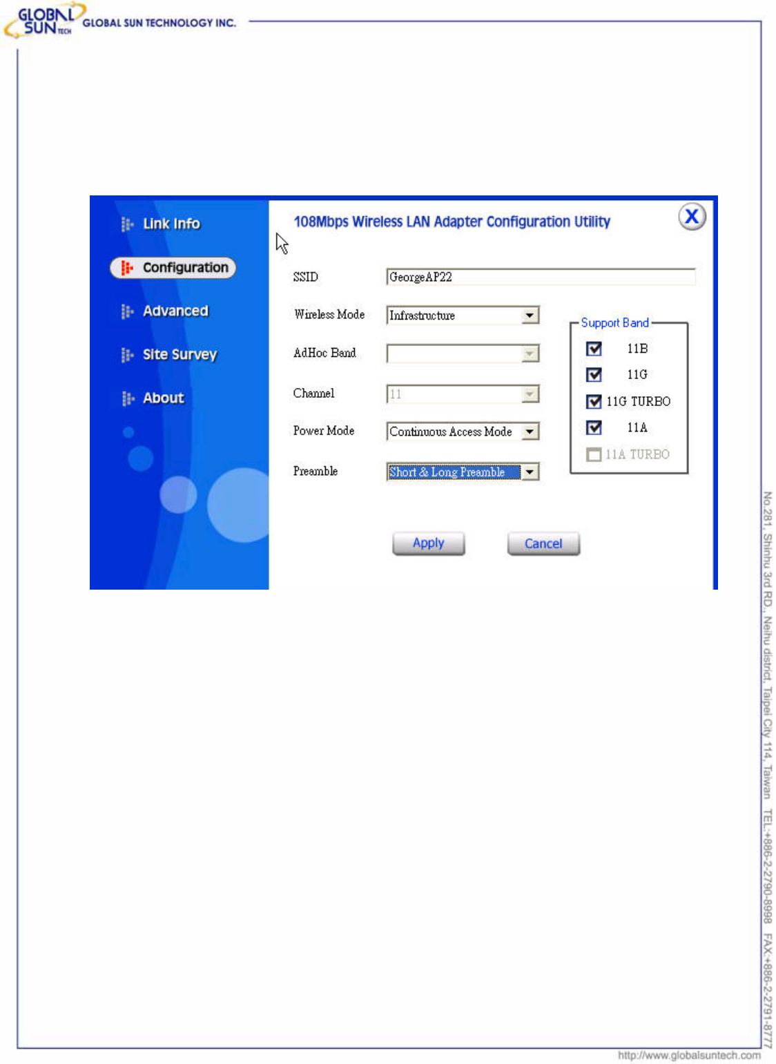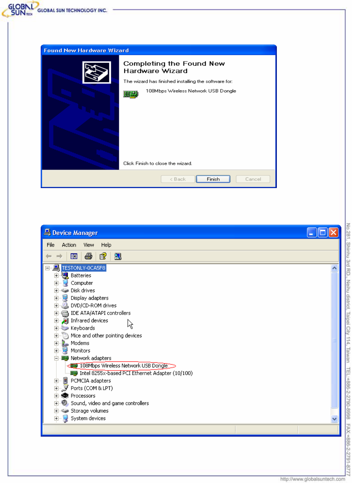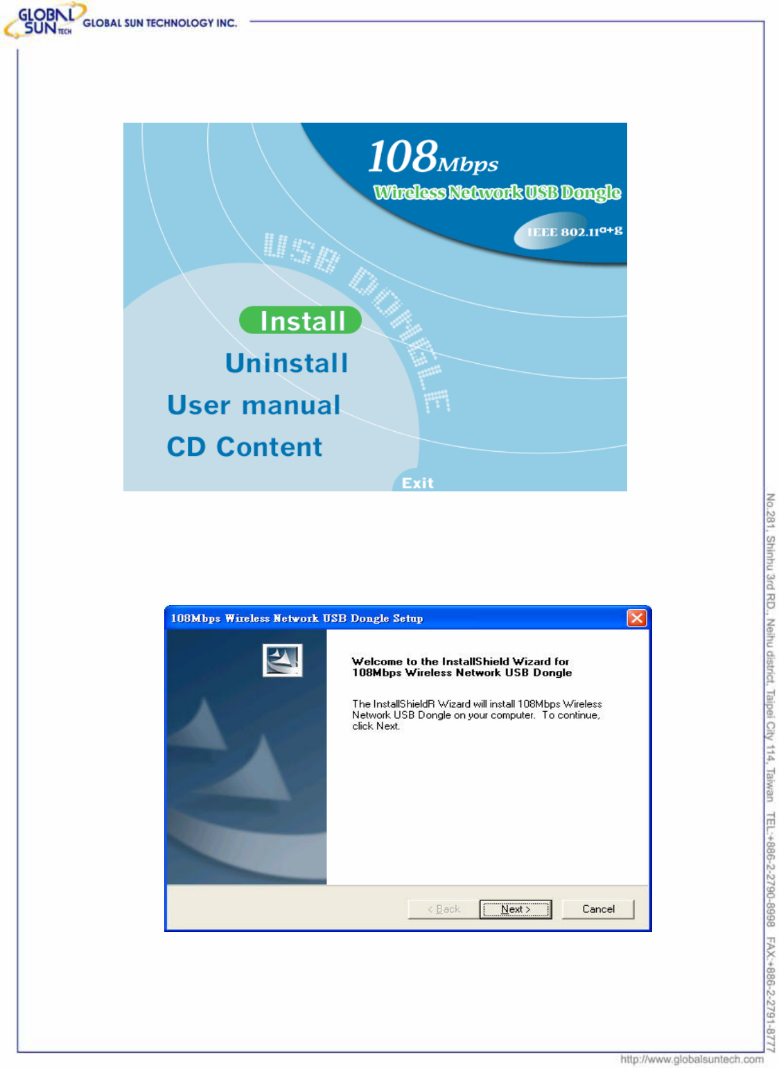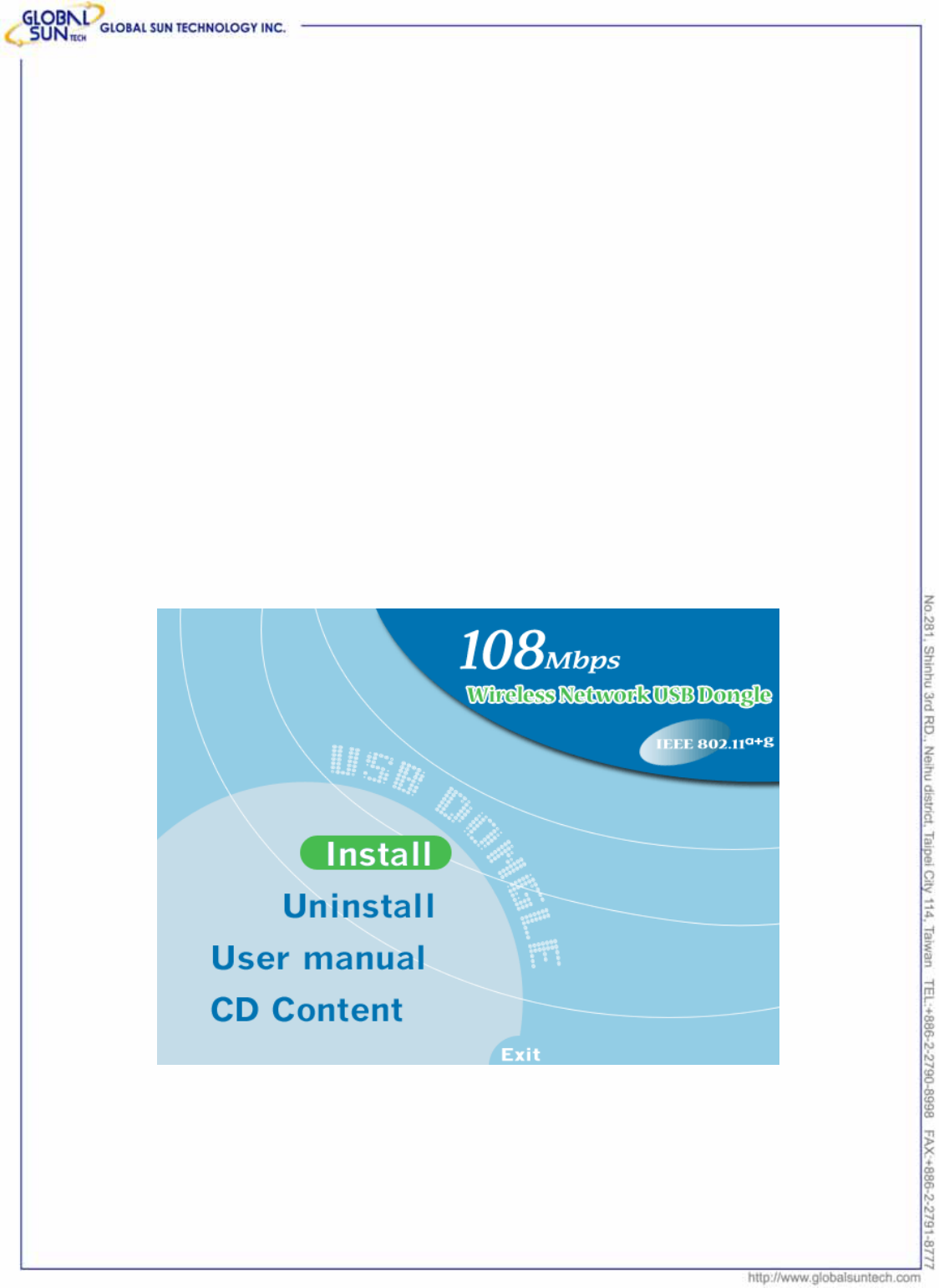 Global Sun Technology Inc 802.11 a+g Wireless USB Dongle Product Specification