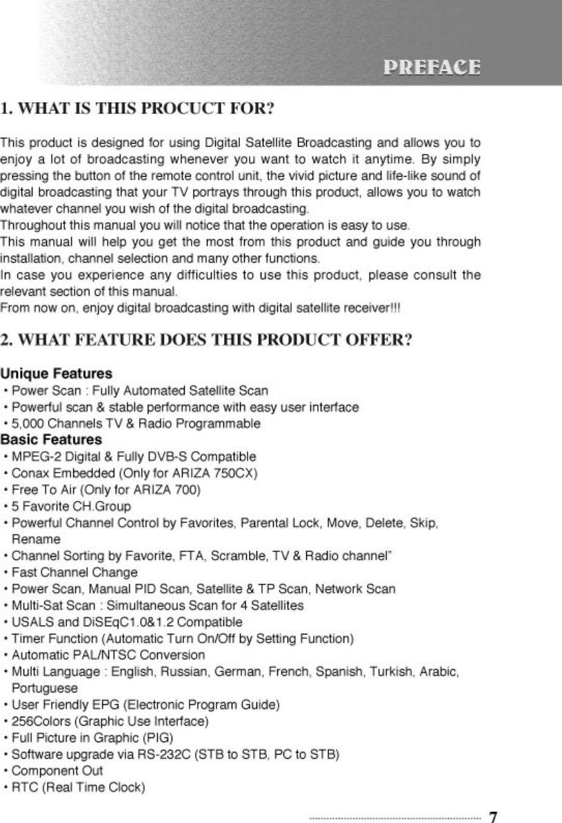 Global Technologies ARIZA800S Digital Satellite Receiver User Manual 1
