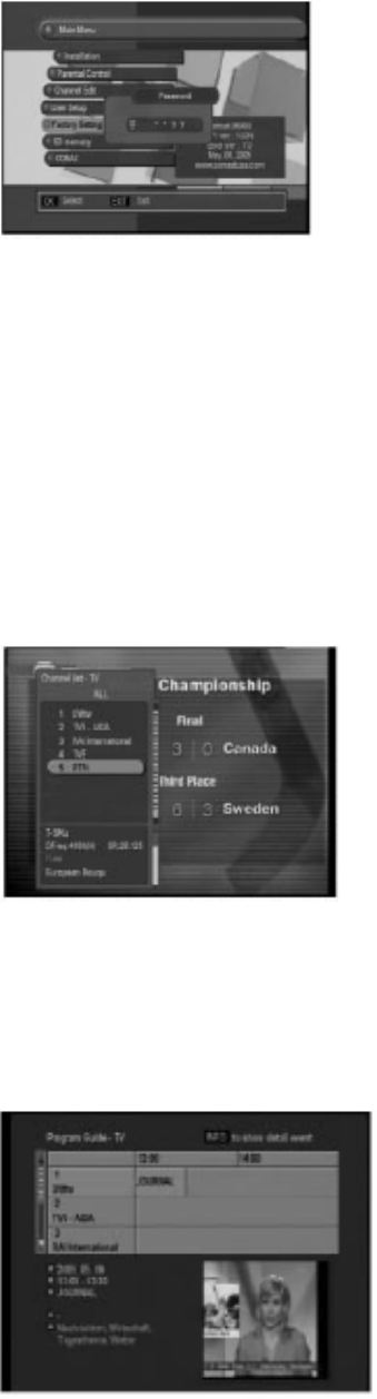 - Sorting: Alphabetic, Satellite, FTA/Scramble, Parental Lock