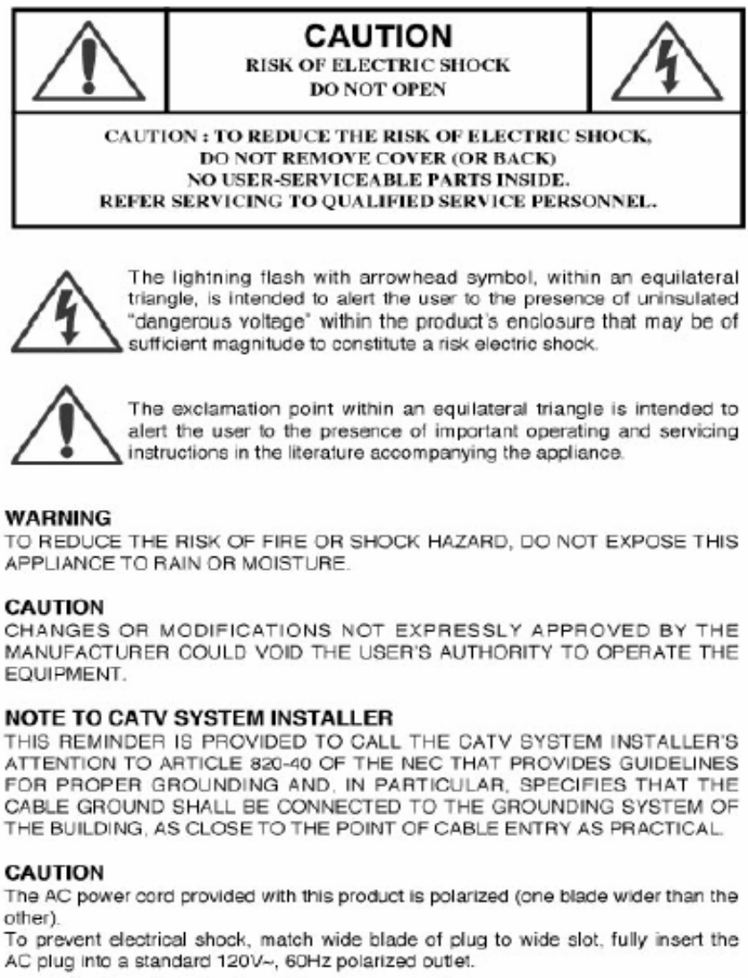 ▪ Apparatus shall not be exposed to dripping or splashing and that no objects filled with liquids, such as vases
