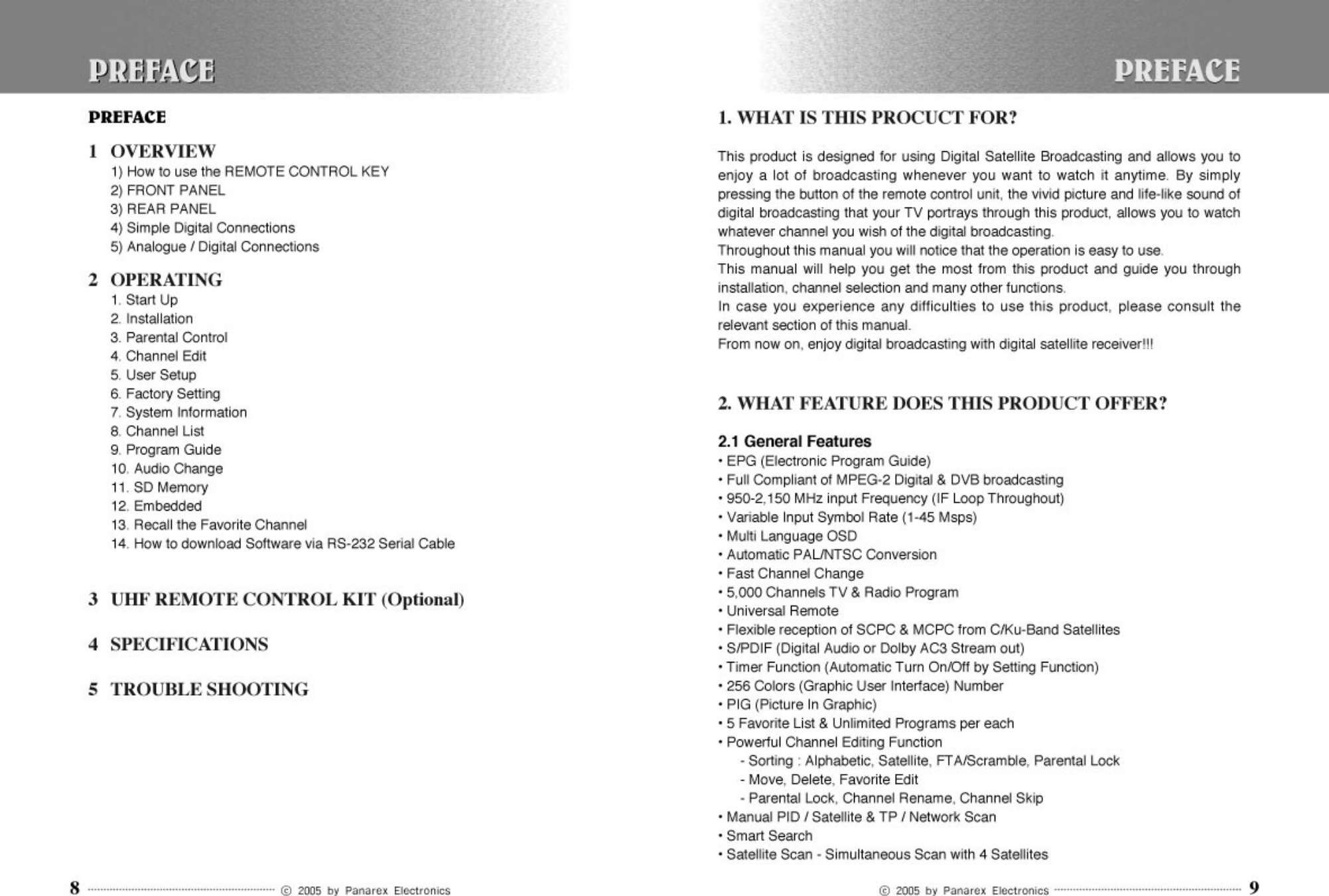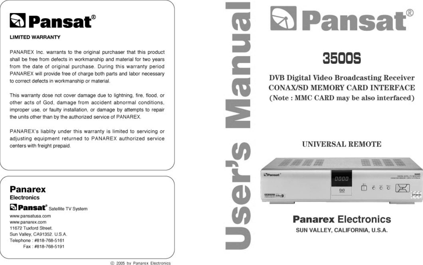 Global Technologies PANSAT3500S Digital Satellite Receiver User Manual Pansat3500S 0519